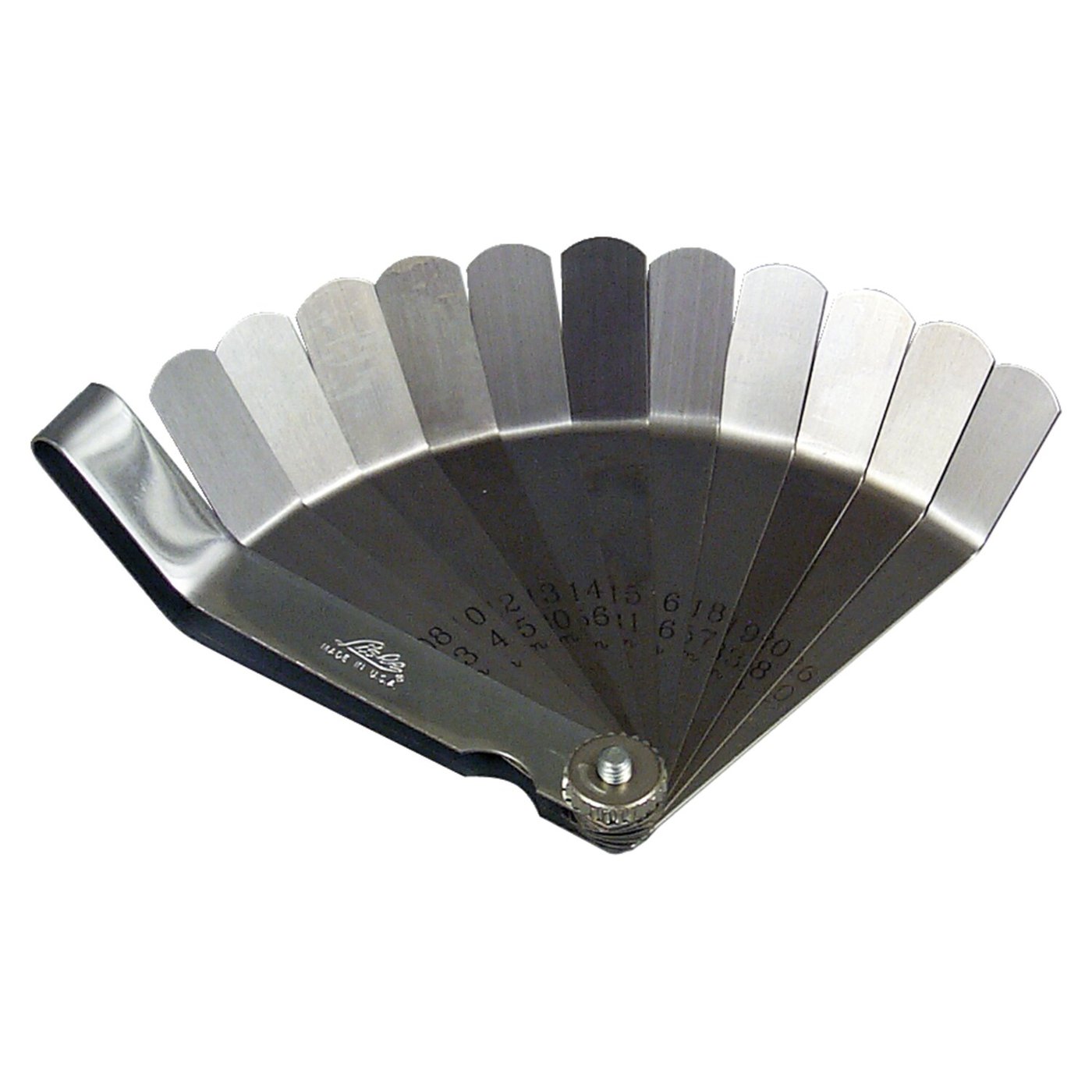 US sizes. Tool dimension 1/2″ wide x 4″ long. 11 offset steel blades .008″ to .026″ (.203mm to .660mm).