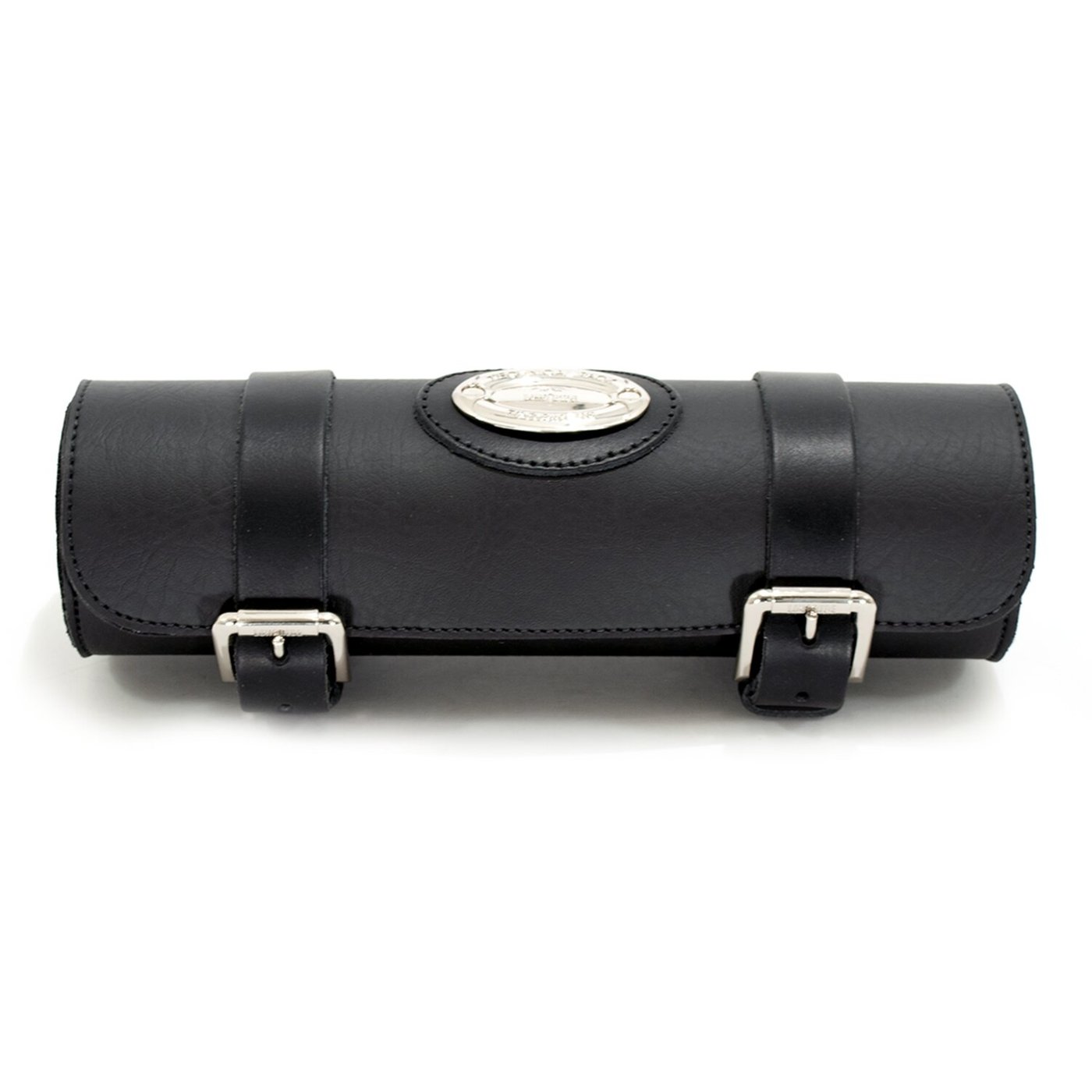 Universal Iparex tool roll with a leather finish, installs with straps to forks, frame etc. Dimensions of this wide version: 33cm wide x 10.5cm diameter. 2.8 Liter volume