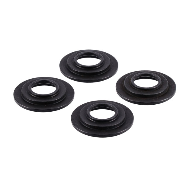 Low profile for +.050″ spring travel. Chromoly, black oxided. Precision re-engineered to offer installation advantages and manufactured of special heat treated chromoly material that has been black oxided. Will fit OEM, Manley and many aftermarket manufacturers valve springs.