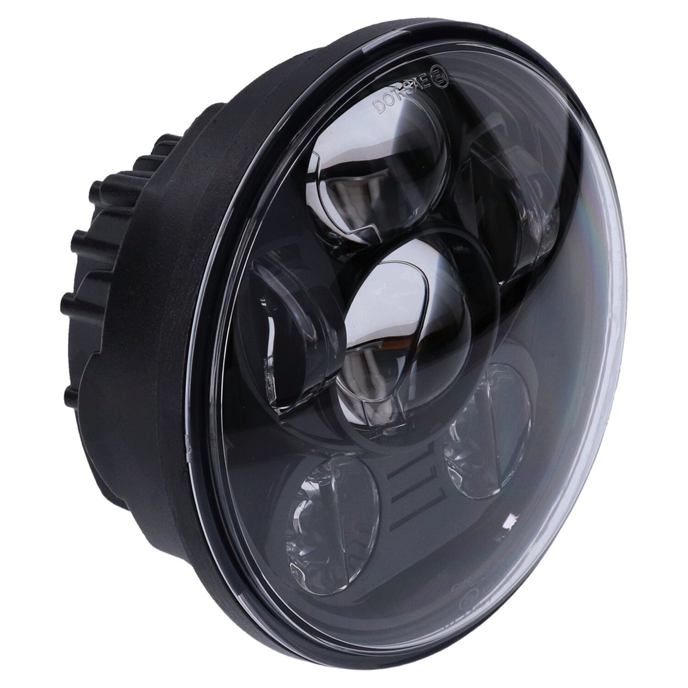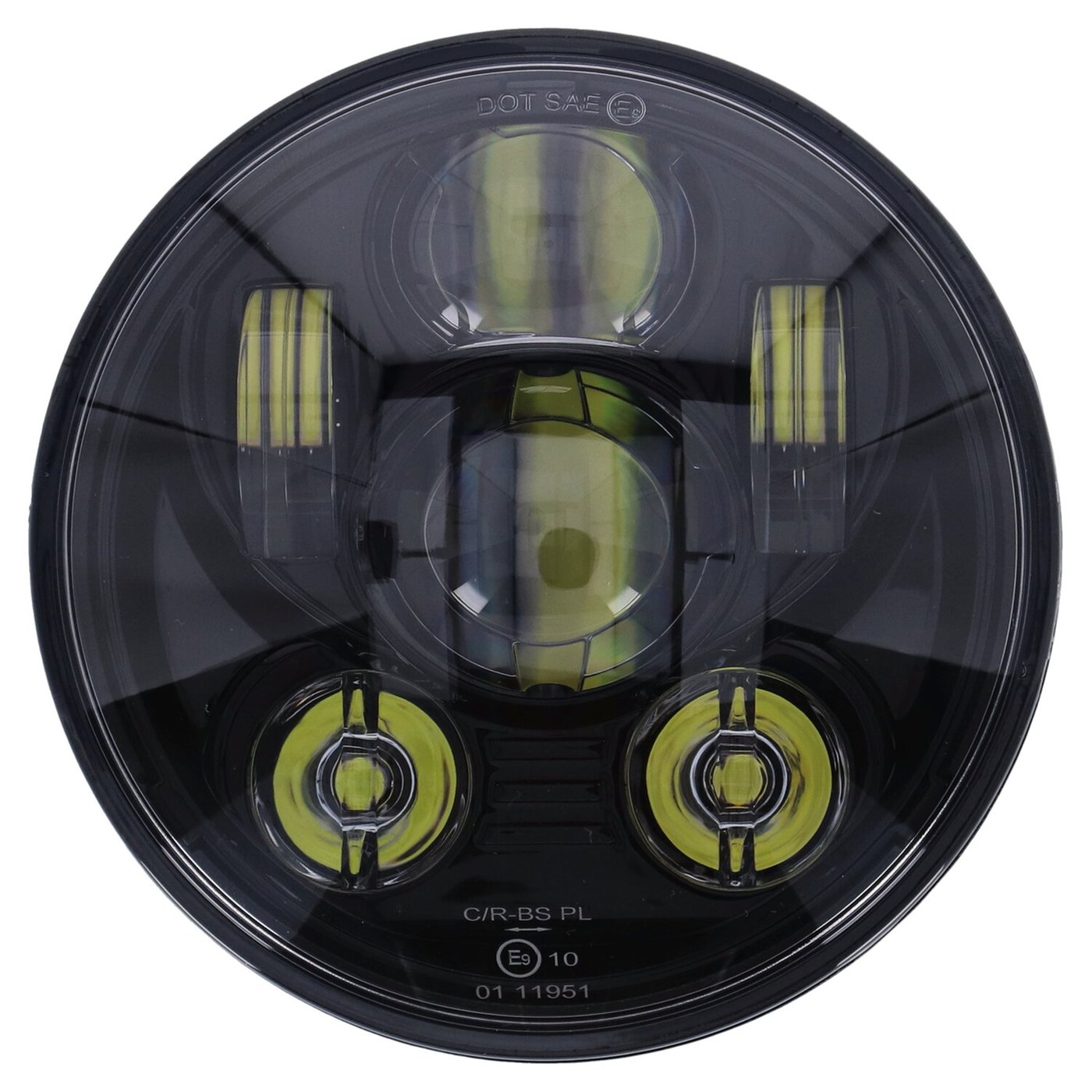 ECE & DOT approved. Without halo-ring / position light. Economical high/low beam LED conversion head lamp unit to replace the stock H4 unit. LEDs are an improvement at all levels when compared to H4 lighting and offer more effective and whiter light at 6000K, much better reliability and less amperage draw. Note: See 998297 for style compatible 4-1/2″ Bright LED spotlamp/passing lamp unit. – No halo ring / position light – Unit comes complete with wiring with a 3-prong plug that is identical to a standard H4 light bulb, allowing a plug & play conversion – Compatible with left side (UK) & right side (EU) driving – 143mm (5.63″) diameter – 88.5mm (3.48″) deep – 6500K color temperature – 12-Volt DC. – Passing beam 16.5W – Driving beam 24W – Approval E24*149R00/04*0294*00