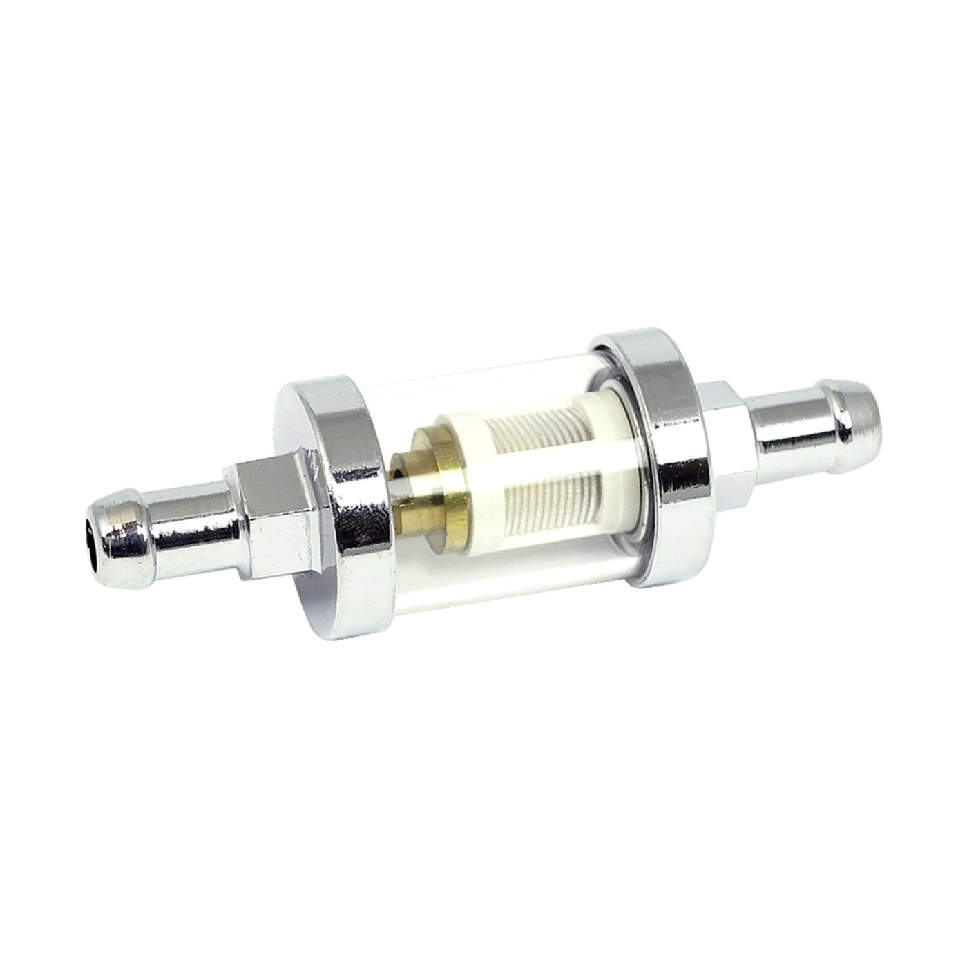 Home > Parts > Gas Tanks & Accessories > Fuel Filters > Clear-view fuel filter, 3/8″ ID. Chrome