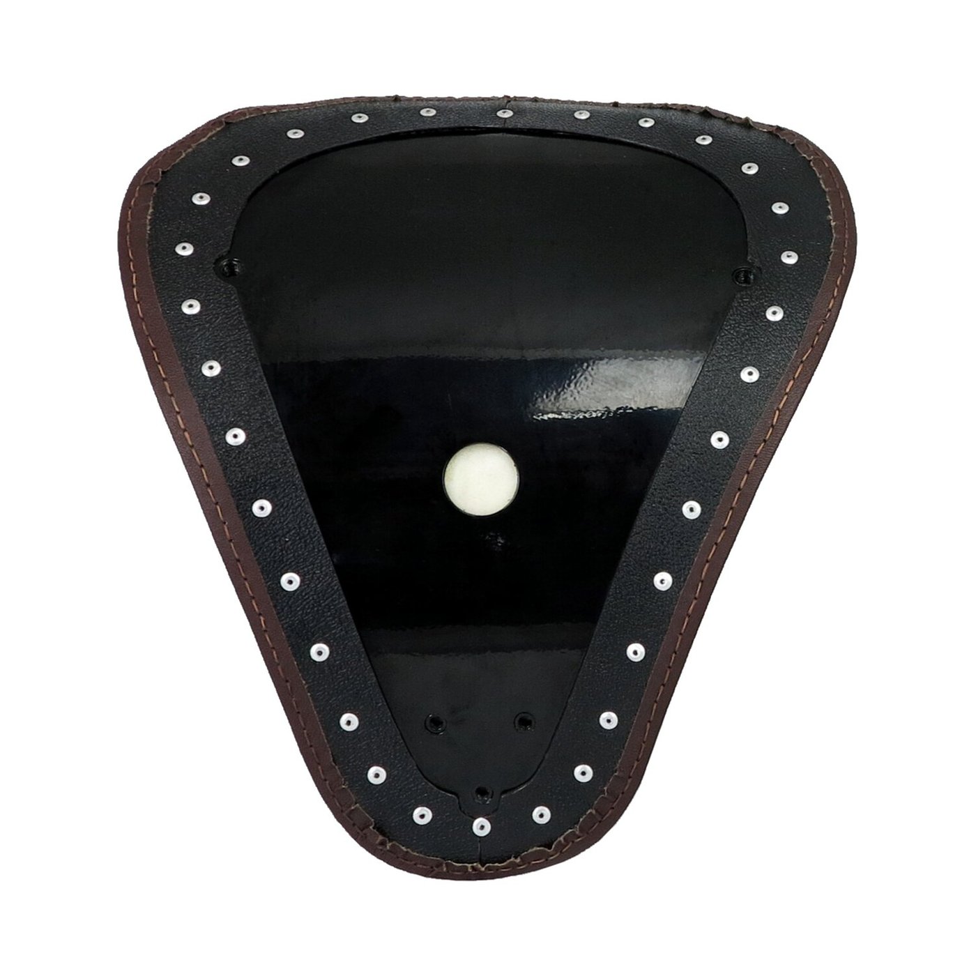 Brown with light brown seat panels. Synthetic leather upholstery. Manufactured with a sturdy steel black powder coated base plate with 6cm thick foam padding for a good combination between looks and comfort. The dual seat panels give it a sniff of 1910’s racing flavor. Dimensions approx.: 12-1/2″ (31.8cm) long x 10″ (25.4cm) wide x 6cm thick. Note: Mounting studs A=22.5cm, B=23cm.