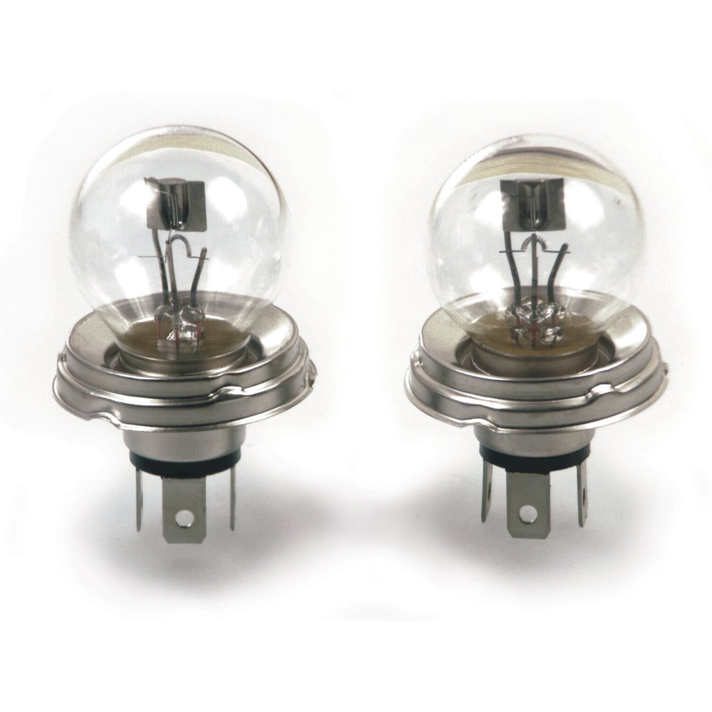 Classic ‘old style’ incandescent ‘duplo’ style headlamp bulb as used before the introduction of H4 (halogen) bulbs.