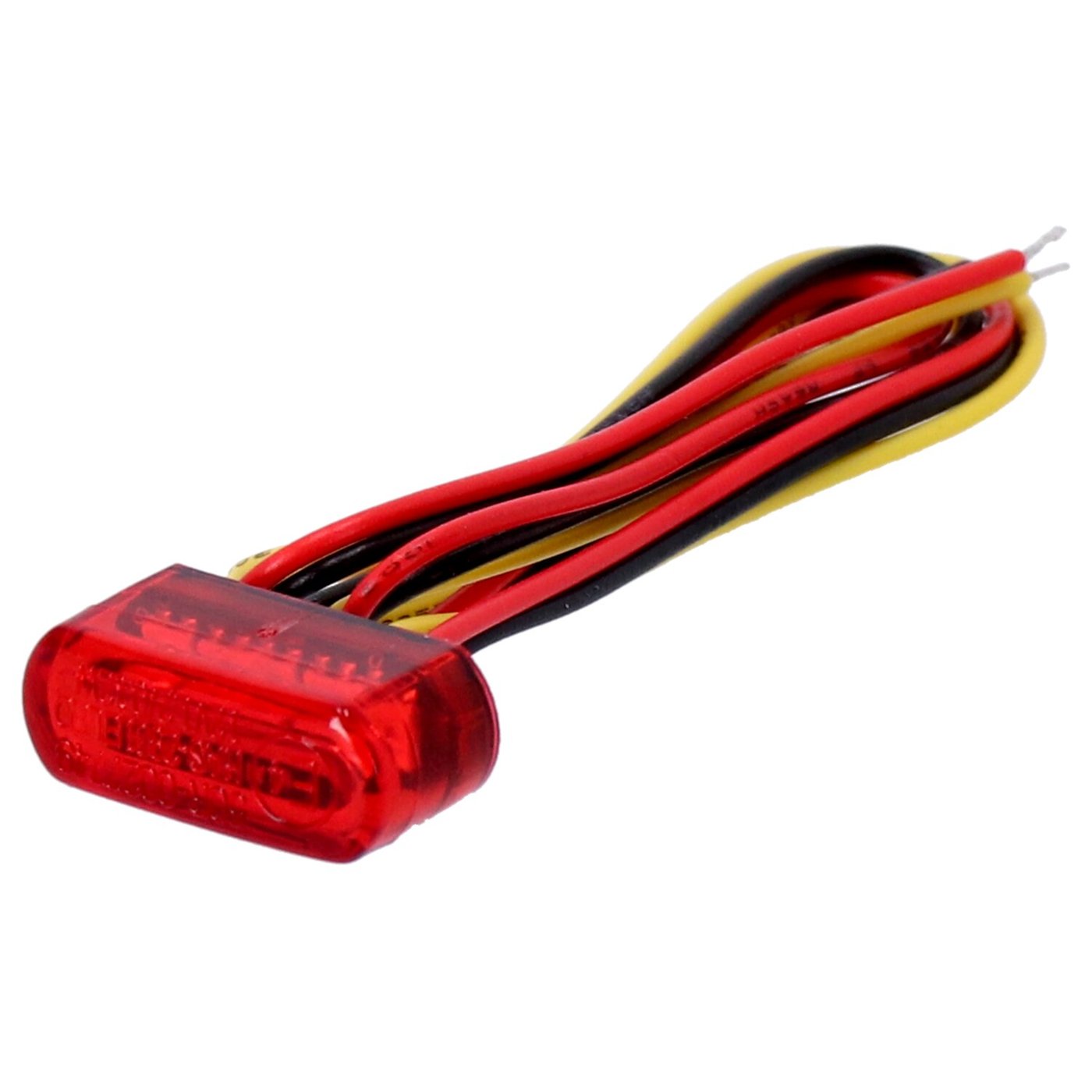 With red colored LEDs for taillight and brake light function. – Same ECE approved light unit as used in the Fastline below bar turn signals – Comes as light unit only, with wiring – Perfect to glue or laminate in position for just about any conceivable custom application – Approx. dimensions: 21.5mmwide x 8.5mm high x 10.6mm deep.