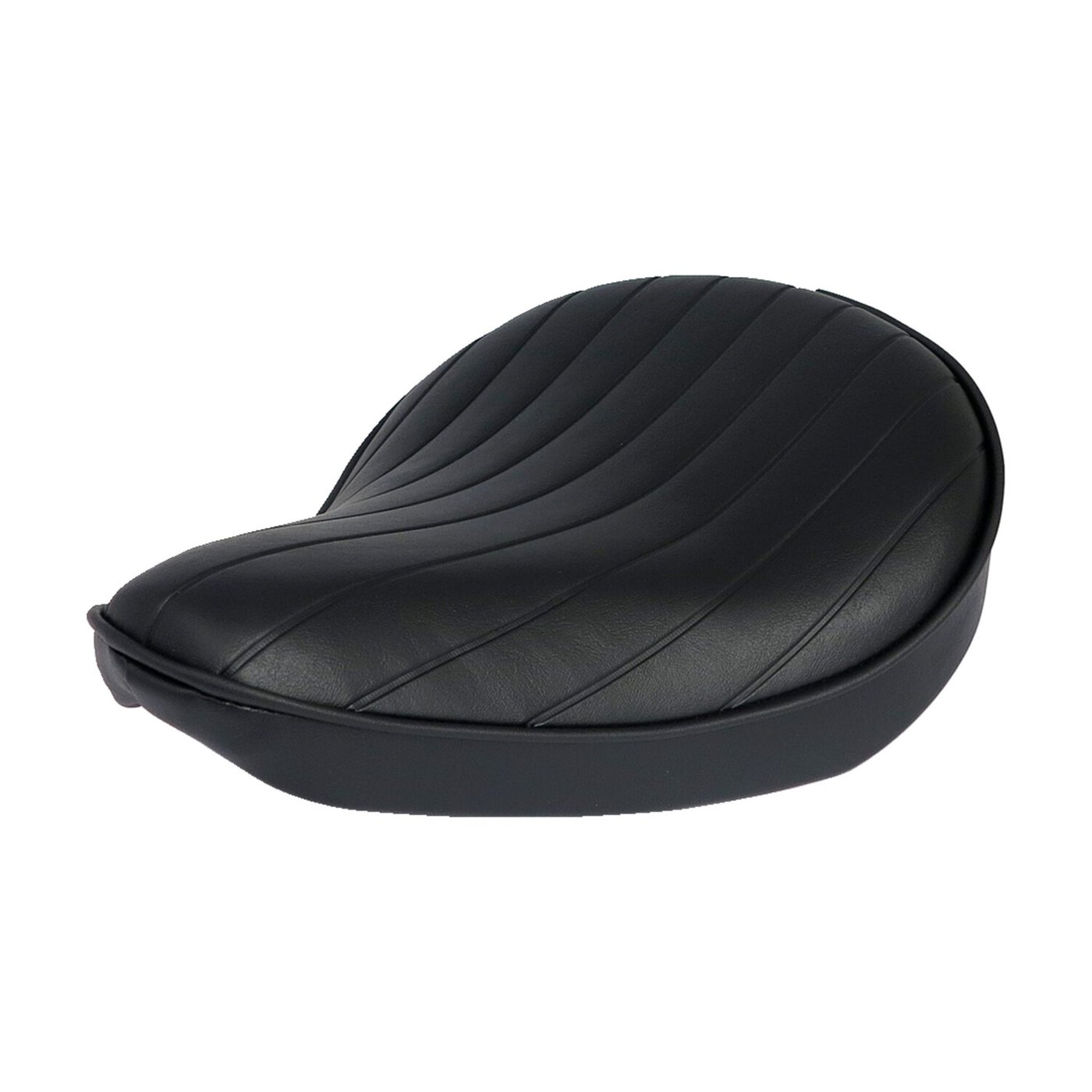 Black vinyl with a vertical Tuck n’Roll stitch pattern upholstery. Period correct for a timeless low budget bobber or Brat Style bike, all without breaking the bank. Approx. dimensions: 12.5″ (31.8cm) long x 10″ (25.4cm) wide. Note: See bolt placement drawing. A=18cm, B=18cm.