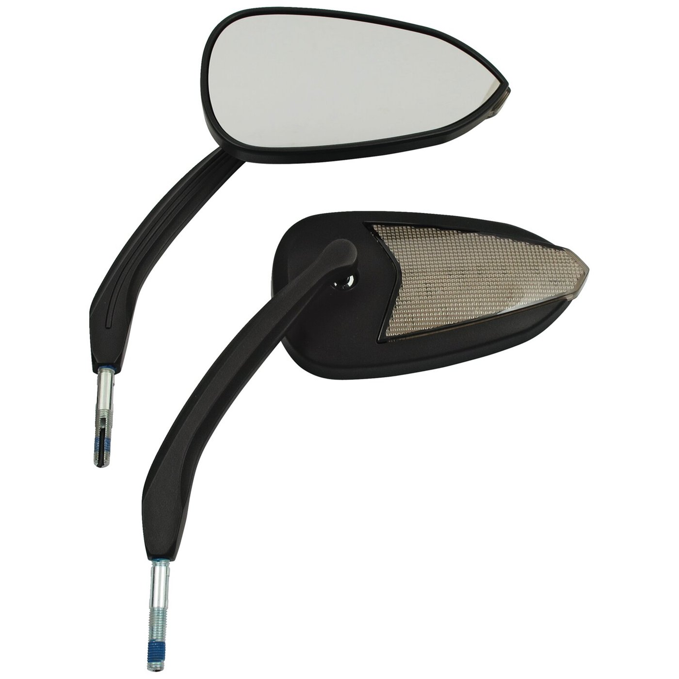 With turn signals only. With 24 LEDs in each turn signal. Die-cast aluminum construction. Approx. mirror head dimensions: 90x150mm. 8mm threaded stem.