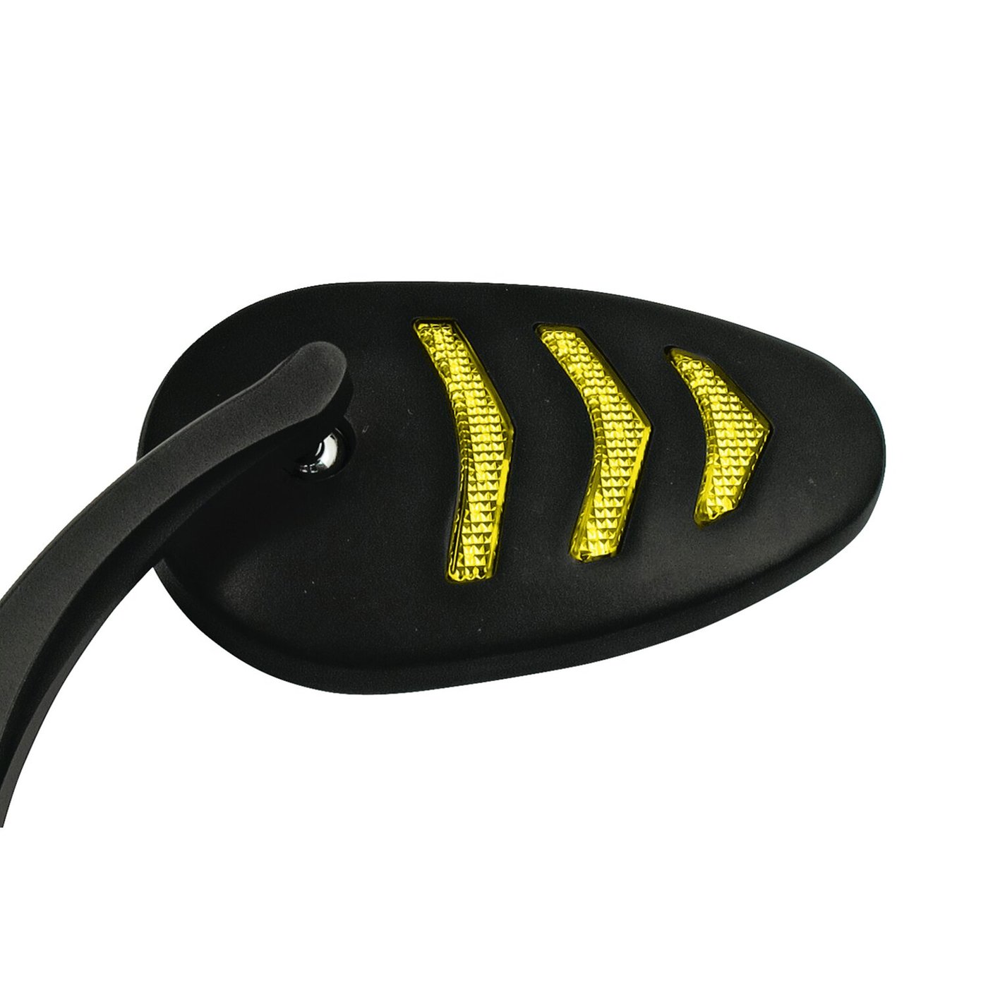 With built-in LED lighted turn signals in the front side of the mirror head. Billet aluminum head with and a convex glass for a wider view. Mirror glass is light tinted. Approx. mirror head dimensions: 90x148mm.