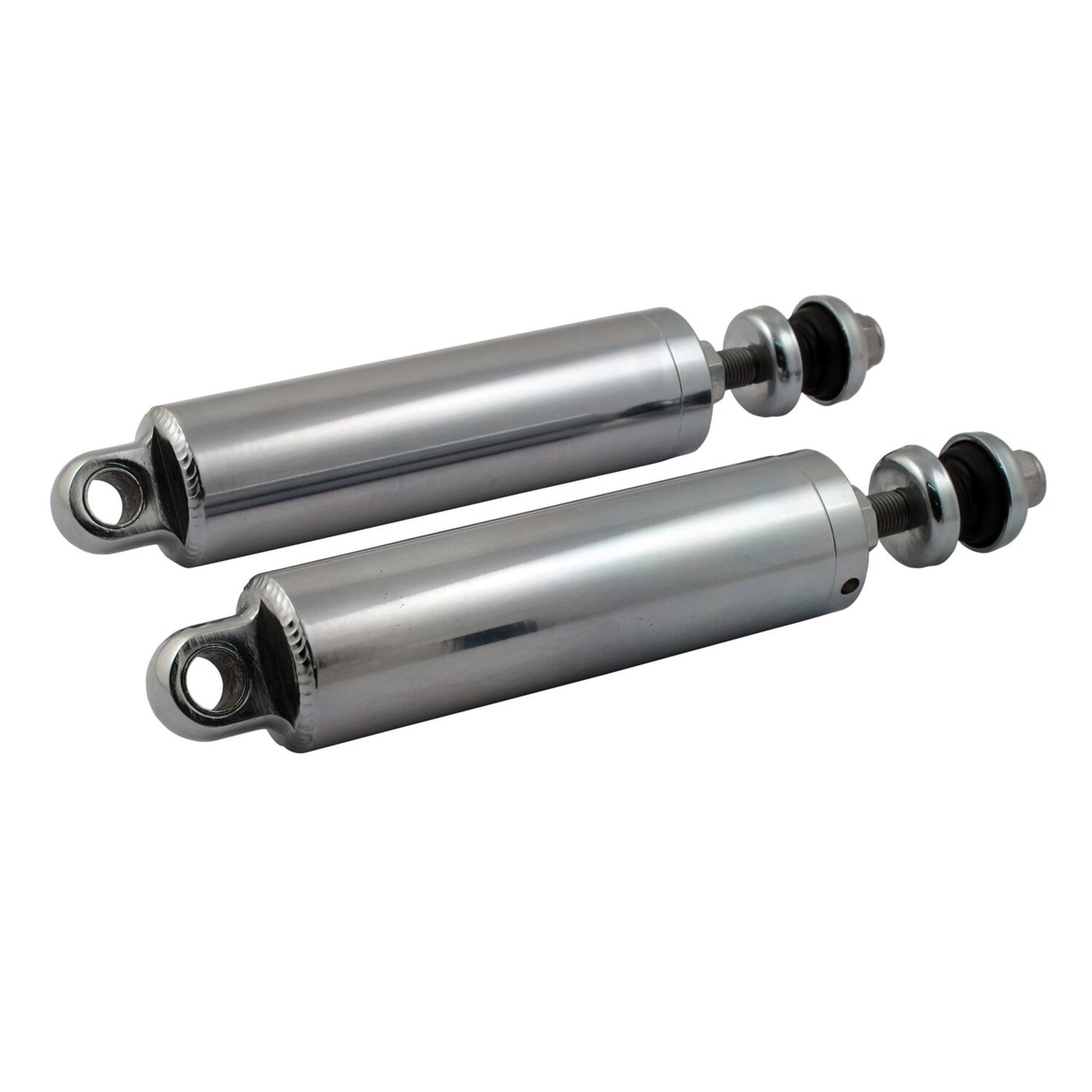 Chrome plated. Designed with an outside diameter of just 2 inches for stock or space limited applications. Height adjustable up to -1-3/4″. Includes aluminum spacers for correct end spacing. Note: Suspension is harder and less comfortable than stock.