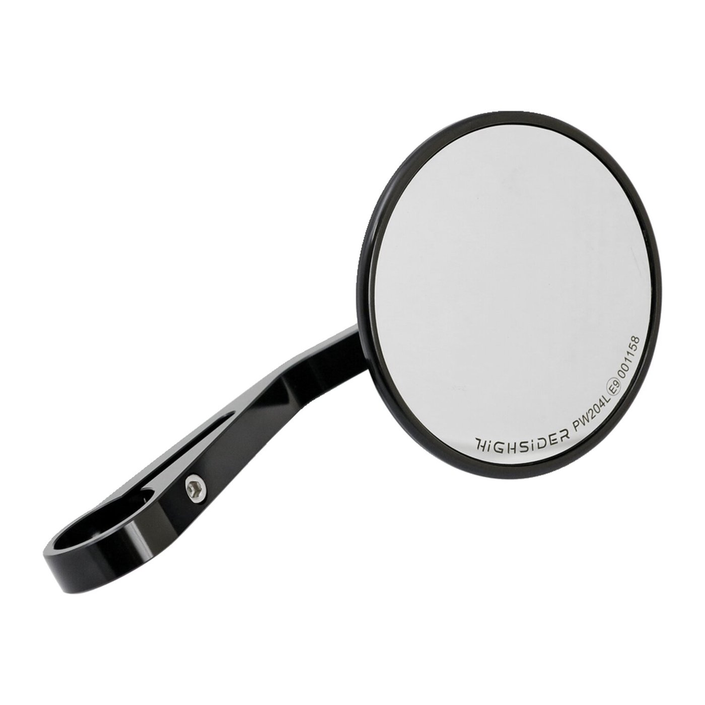 Black anodized aluminum. Aluminum head. Fits left & right on all 7/8″ (22mm) and 1″ handlebar ends. Mirror head approx. 100mm diameter, overall height approx. 160mm. ECE approved.