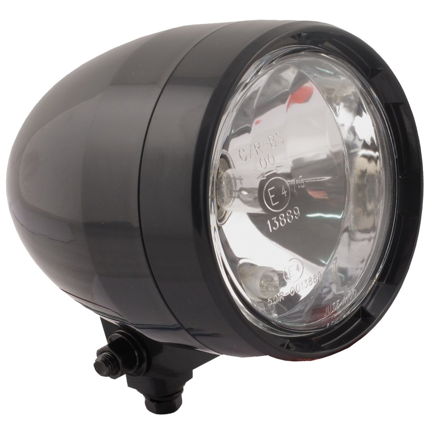 – Black – With HS1 12V 35/35W and position light – ECE approved lens – Housing dimensions: Overalll 125mm ø, housing depth 140mm, glass diameter 100mm