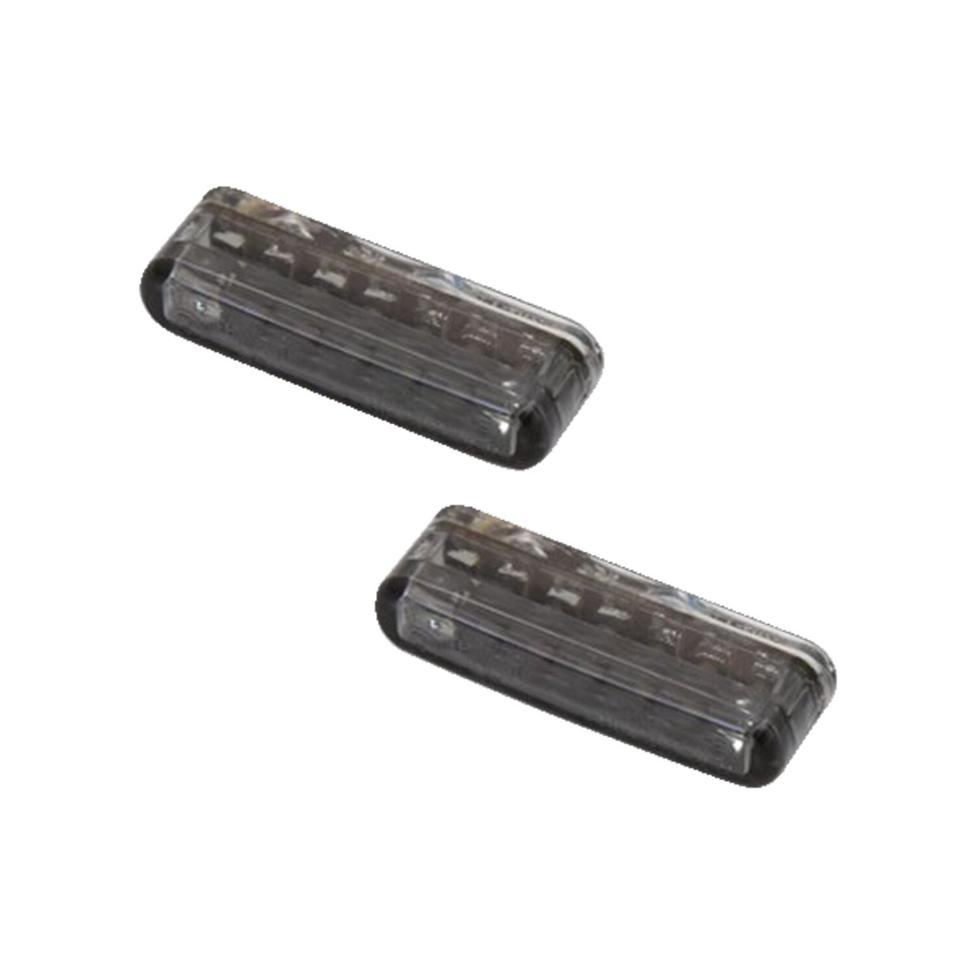 With regular LEDs. Smoke lens. plastic body. Extremely small and flat design. ECE approved for rear horizontal or vertical use. Installs by glueing or laminating into place. Approx. dimensions: 40mm wide x 8mm high x 13mm deep. Yellow wire = taillight, red wire is brakelight, blue wire = turn signal, black wire = ground. Note: See 922134 for optional steel housing for additional installation options.