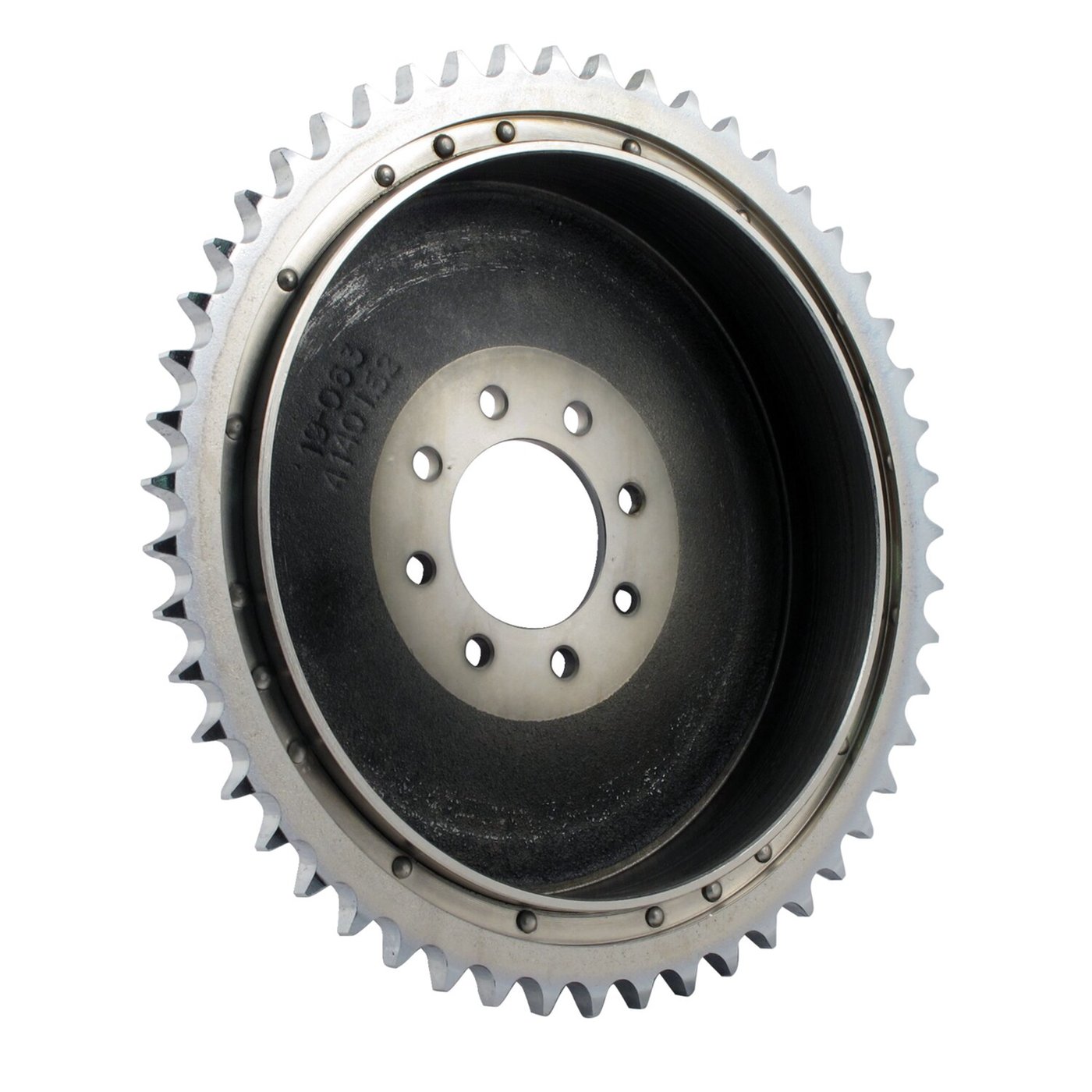 Reproduction style brake drum. With pre-installed sprocket. Replacement for OEM 41401-54. Note: Even marginal out of round sprockets or brake drums, a common occurrence from day one, create a noticeable tight spot. Adjust your chain on this ‘tightest spot’. Always keep sufficient play to prevent excessive wear on chain and bearings of transmission mainshaft, swingarm and wheel.