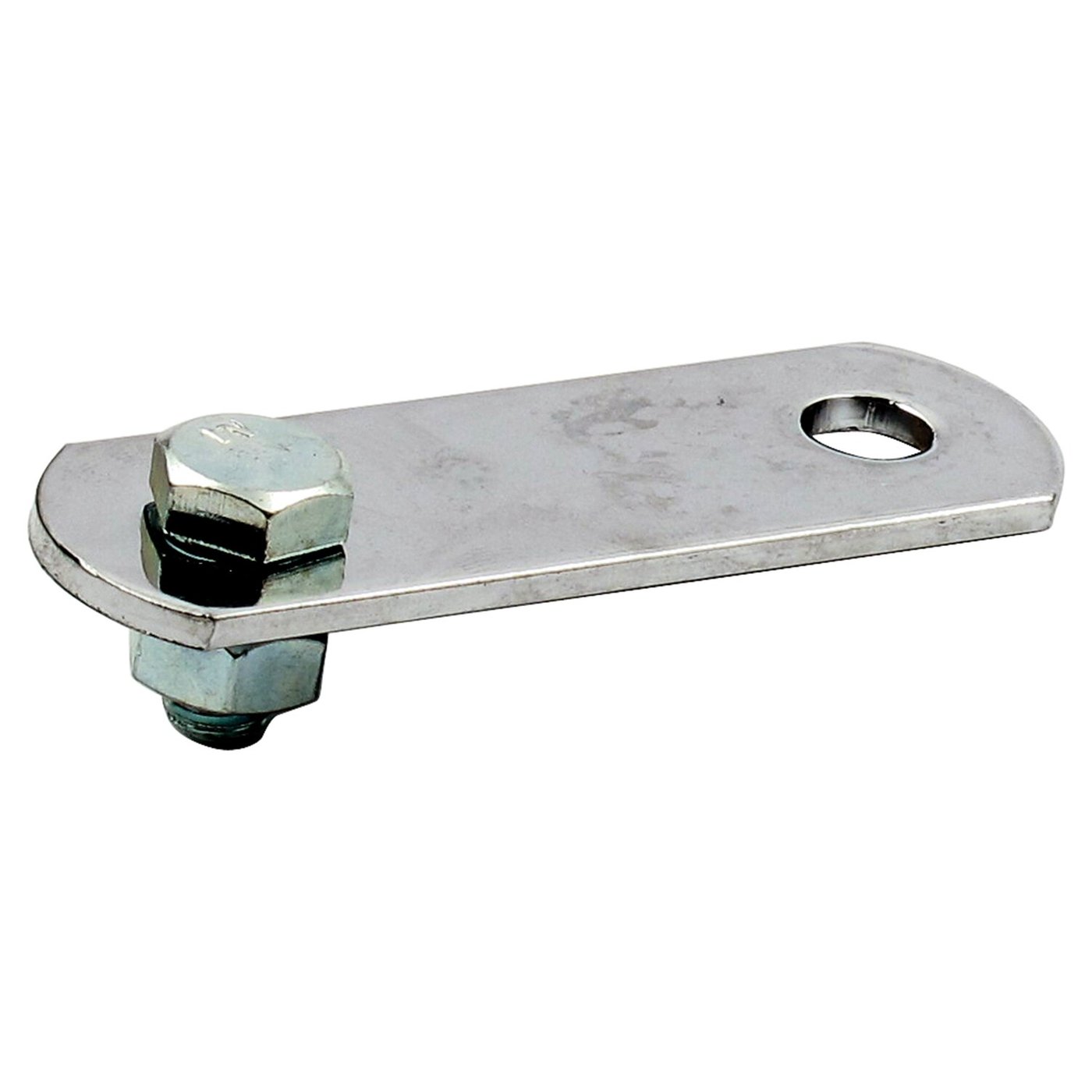 Chromed steel. Straight. 3mm thick. Exhaust hanger bracket, for use in custom applications.