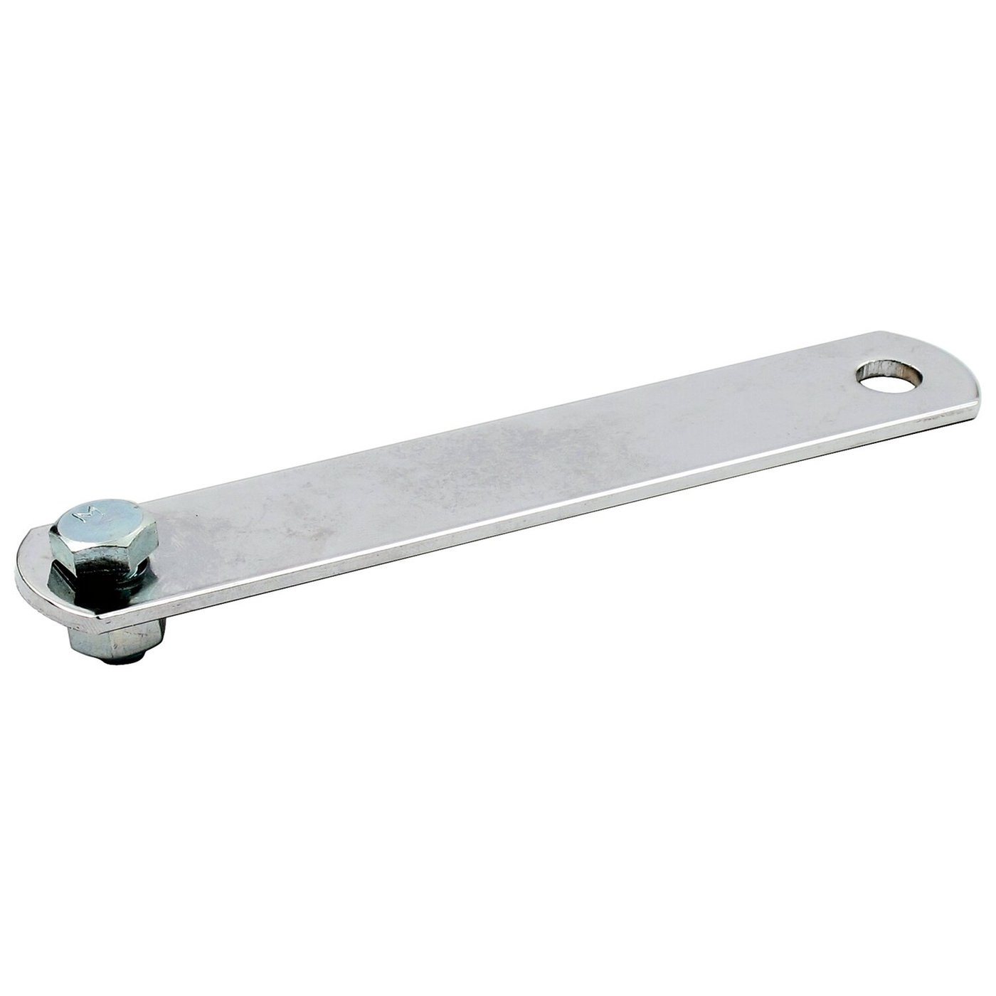 Chromed steel. Straight. 3mm thick. Exhaust hanger bracket, for use in custom applications.