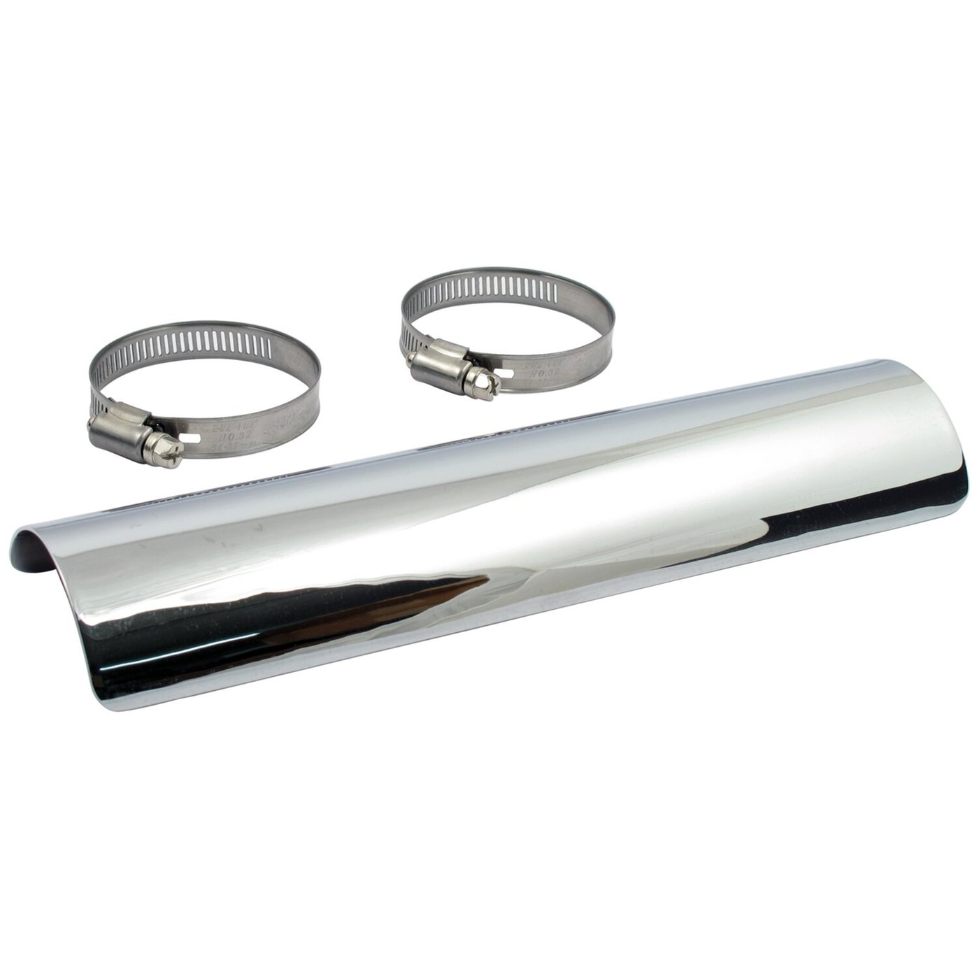 Universal smooth heat shield 10″ long chrome fits 2-1/4″ exhaust pipes