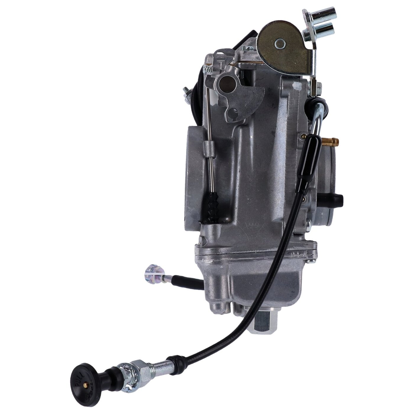The racing carburetor for monster motors. The Mikuni HSR48 delivers the highest airflow with accurate fuel metering for more power and precise throttle control. An extended main jet and larger needle valve assembly ensures maximum fuel flow to powerful engines. Intended for use by experienced builders. Includes carburetor and manifold adapter rubber.