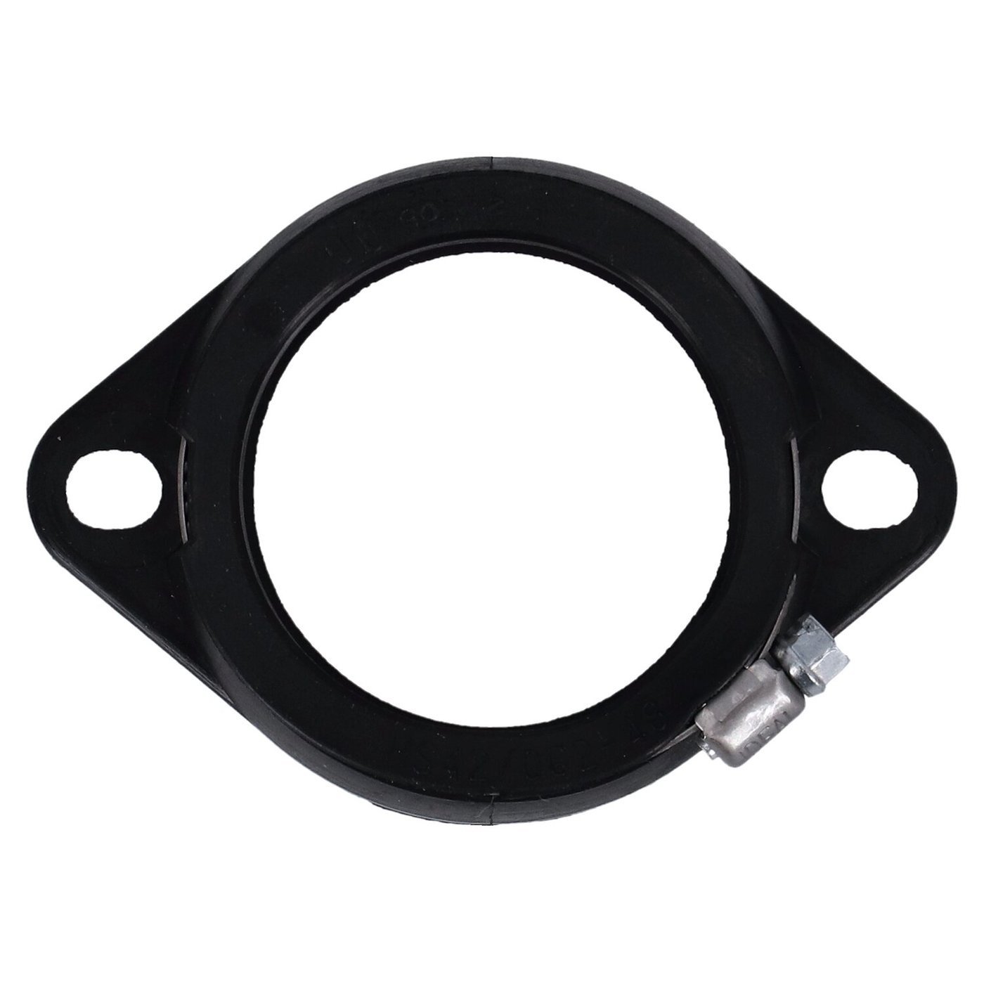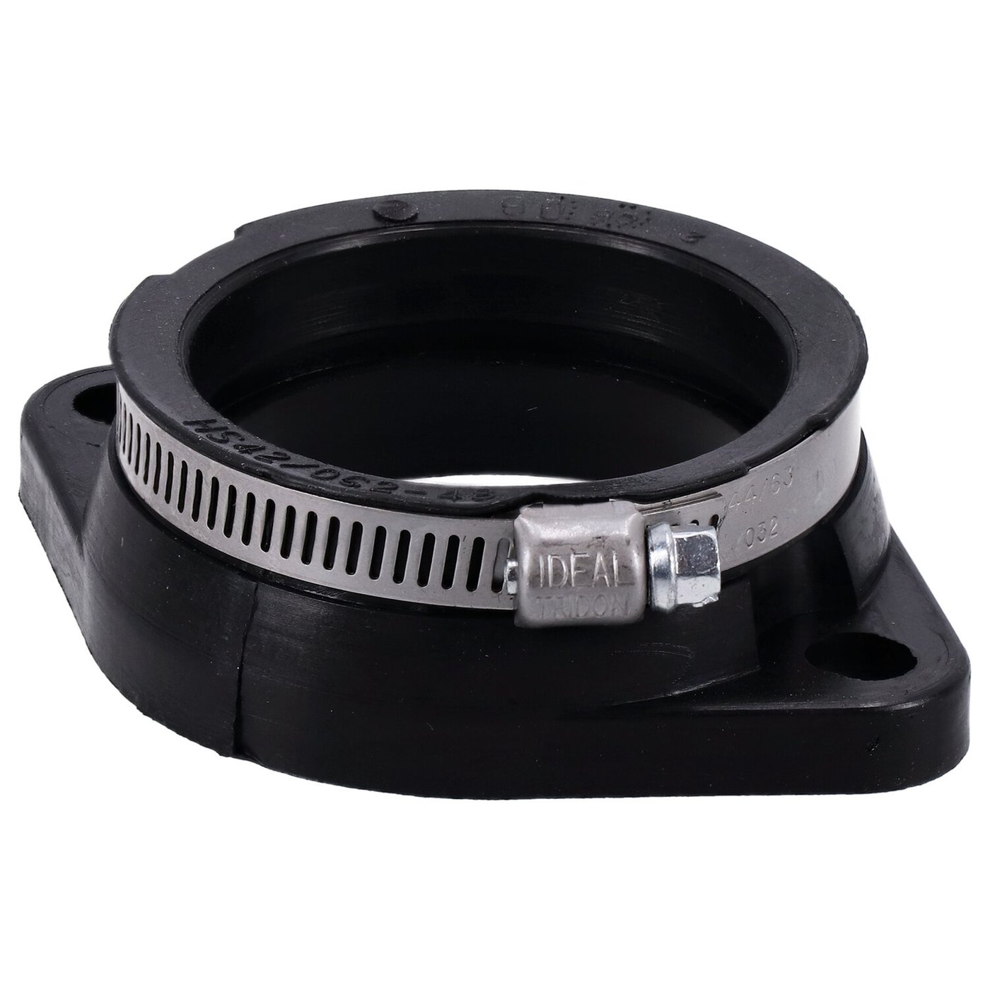 Fits HSR48 using stock Mikuni 2-bolt manifold; black rubber flange with worm drive hose clamp