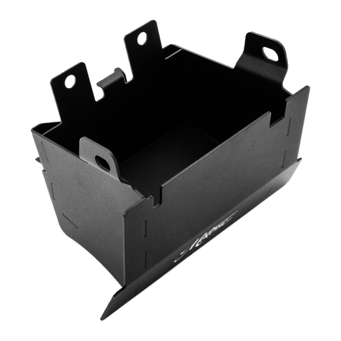 Used to remove the stock restrictive stock airbox when high flow pod filters are used. This CAD designed airbox eliminator is allows you to keep all stock electronics and can be used with, or without, side panels. The battery box is made of lightweight aluminum with a wrinkle powder coat finish.