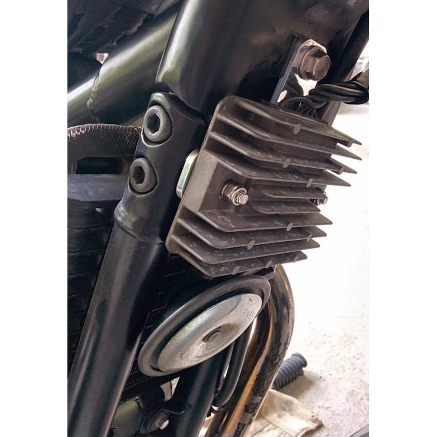 Bolt-on, no re-wiring required. Custom CNC milled from aviation grade billet 6061t aluminum. Includes all stainless fixing and nylocs. Allows you to move the regulator back to forward frame rails.