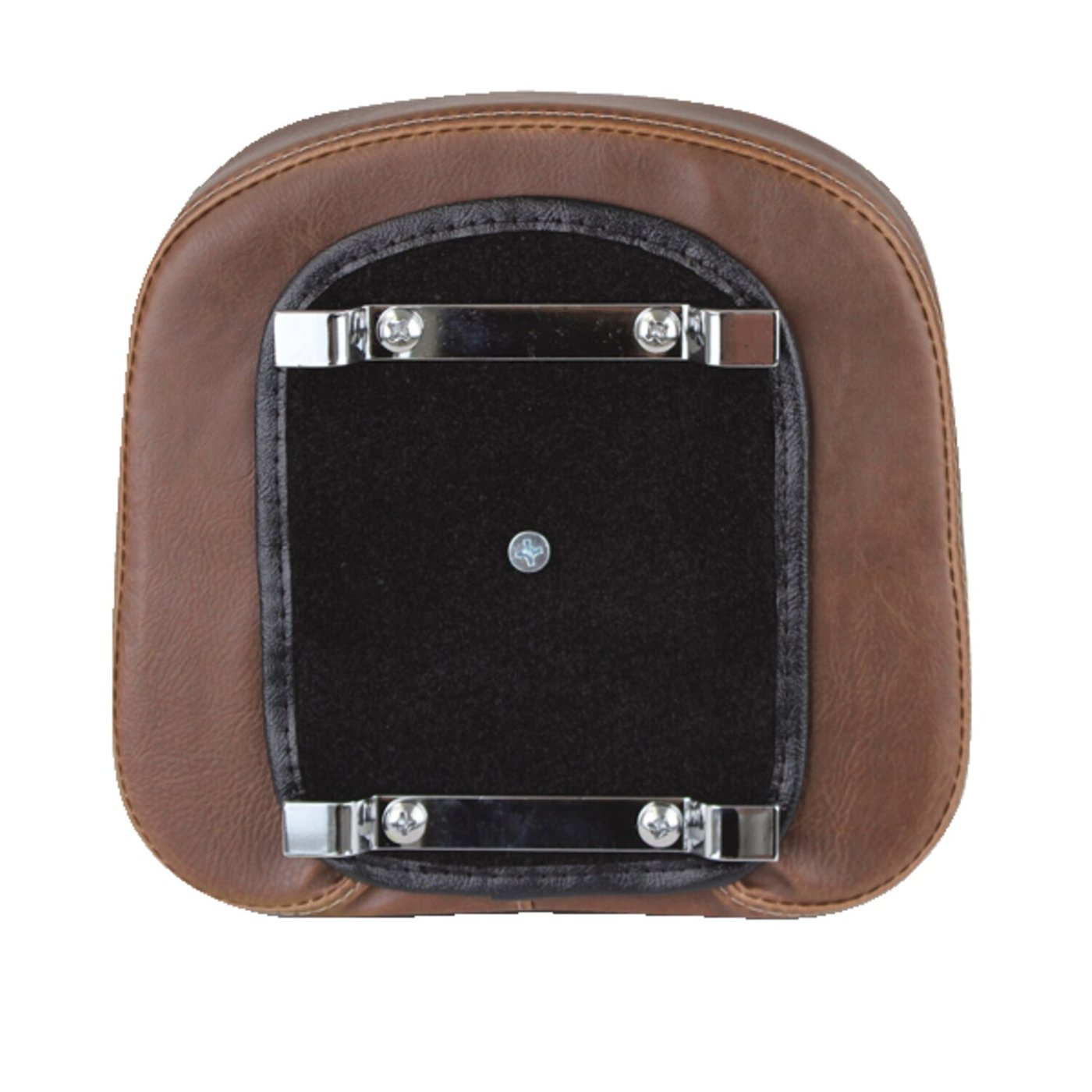 Distressed brown. Will fit all H-D and aftermarket sissy bars/uprights with or without a welded insert plate. Comes with a carpeted back. Approx. dimensions: 9″ (22.9cm) high x 9.5″ (24cm) wide. Note: These 9″ high pads have a threaded center hole for blind mounting, plus the optional top bracket. Note: Not recommended for H-D low and Mini sissy bars/uprights.