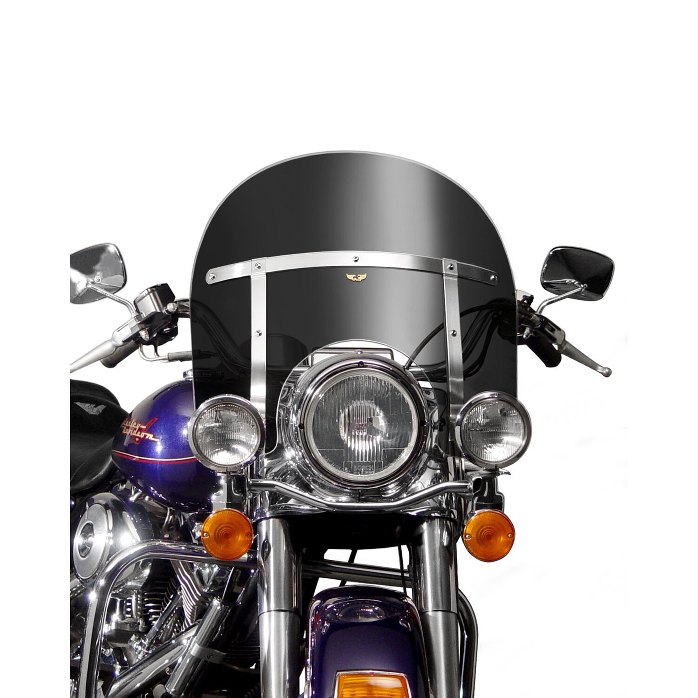 6″ shorter than stock. 95% tinted. Shorter replacement screen for Harley-Davidson® Road King® and Softail® models, but better quality. With dimension is identical. Manufactured from 4.0mm thick polycarbonate, 33% thicker than the OEM 3mm, for unmatched impact & crack resistance, making it virtually bullet proof. The additional Quantum™ hard coating makes it a 10x better scratch & abrasion resistant and a 2x better weather & ageing resistant screen than your current OEM H-D® shield. This is a custom shortened and darker replacement for the stock height 58327-06 (HDI models) and 58193-94 (National Models) windscreen. Note: See 926059 for the standard 27″ high replacement DOT approved with a clear (non-tinted) screen.