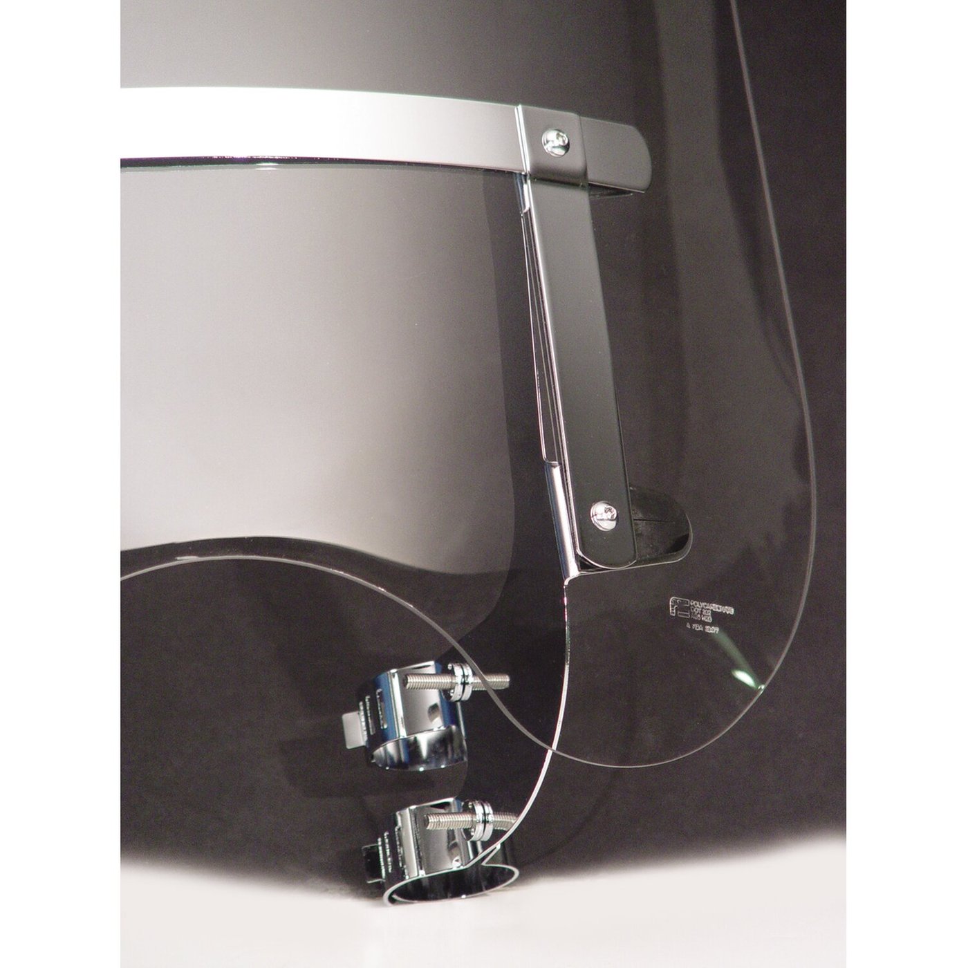 Not for use with a light bar. A custom look for XL Sportsters and other models with narrow glide forks. High Impact Acrylic. Includes variable fork mounting hardware. Dimensions: 17.5″ (44.5cm) high x 18.3″ (46.5cm) wide