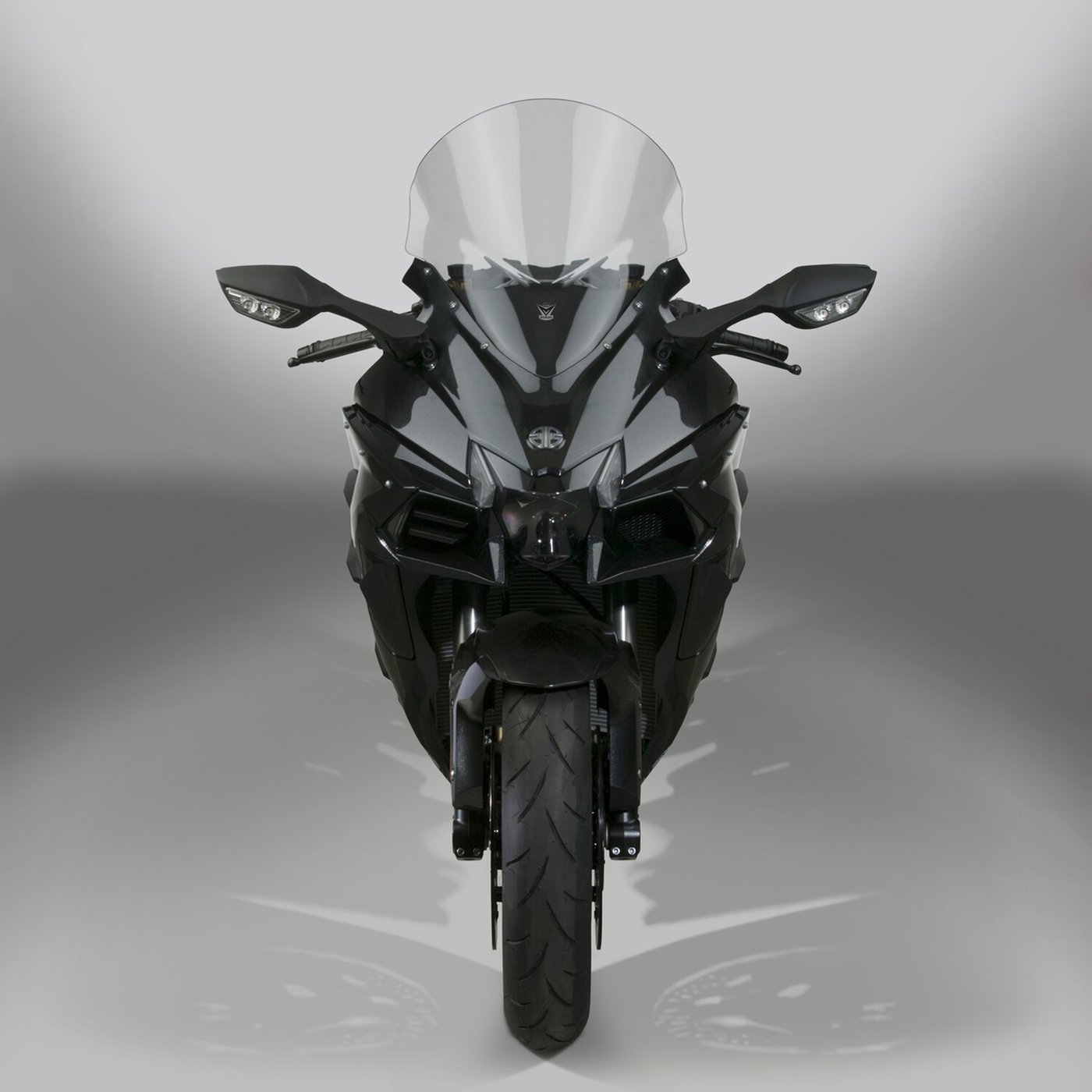 The “V” shape and advanced dimensional contours push the wind vortex away from the rider’s head, resulting in a peaceful, quiet riding environment. The passenger’s comfort is improved as well. Reduced wind noise, less turbulence, superior strength, perfect style. Made from Quantum® hardcoated polycarbonate. Uses OEM mounts. – Quantum® Hardcoated polycarbonate. – Uses OEM hardware. – Light tint, 26% tint. – Center screen height: 17″/43,2cm. – Width: 16.13″/41cm.