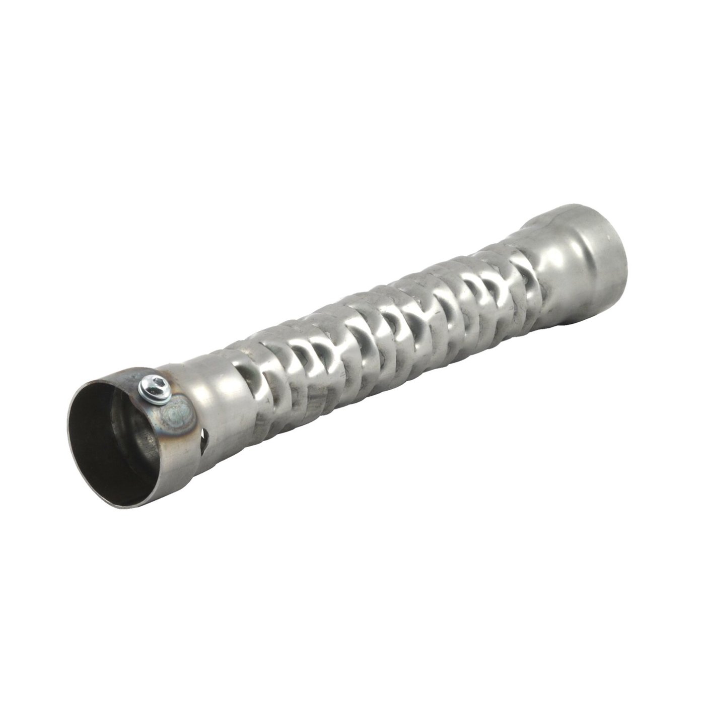 Plain steel drag pipe baffle. 2″ (51mm) diameter x 13.5″ (343mm) long. Slip-in all metal baffle. Installs by drilling a hole in the backside of the exhaust pipe and fasten with a bolt.