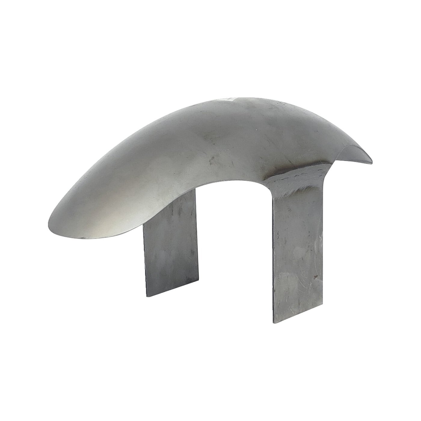 – 165mm wide. – 380mm radius. – 47cm Long. – 1.5mm thick steel. Custom steel front fender by Peter Penz. Note: Length is measured around the radius. Width is measured from inside to inside and mentioned for reference only.