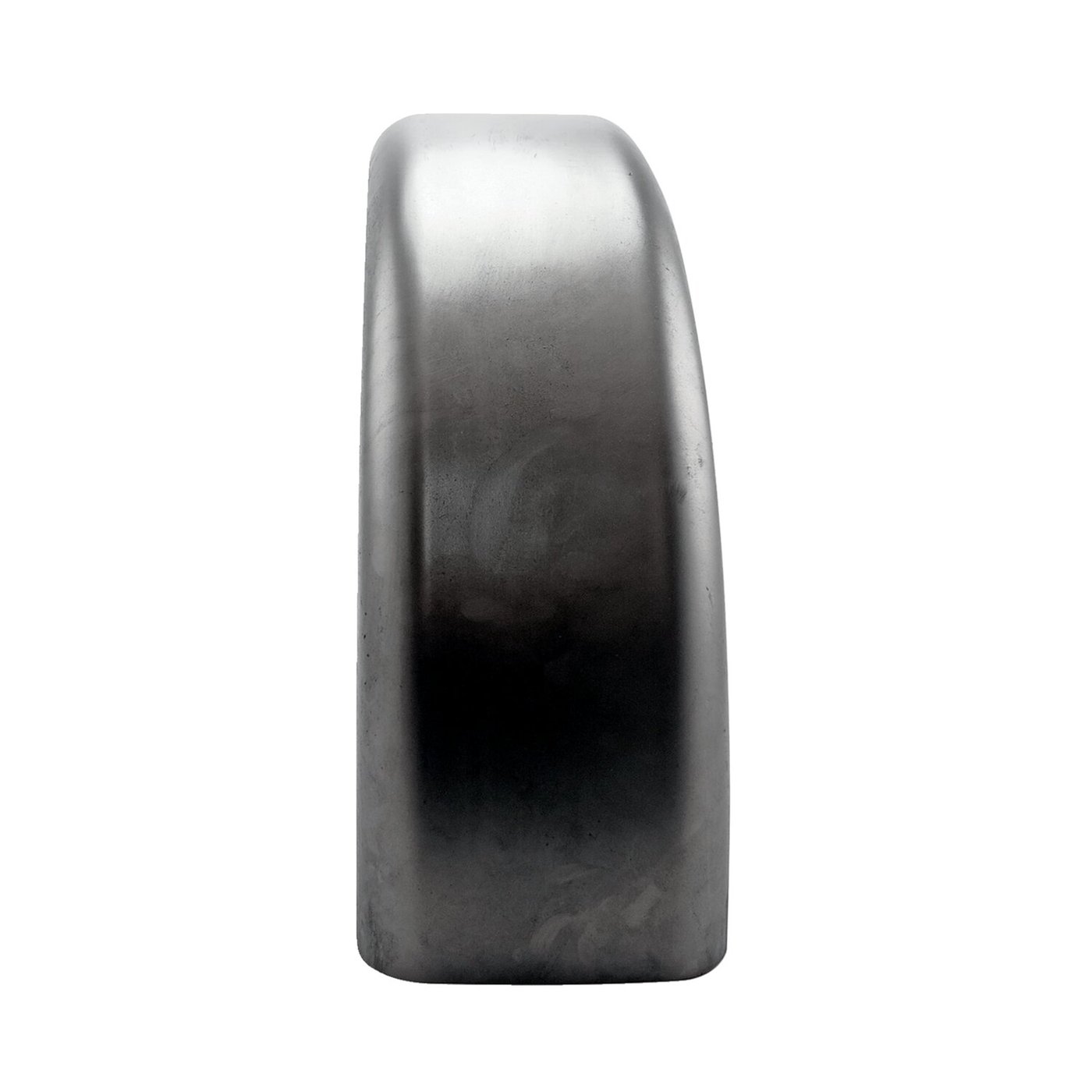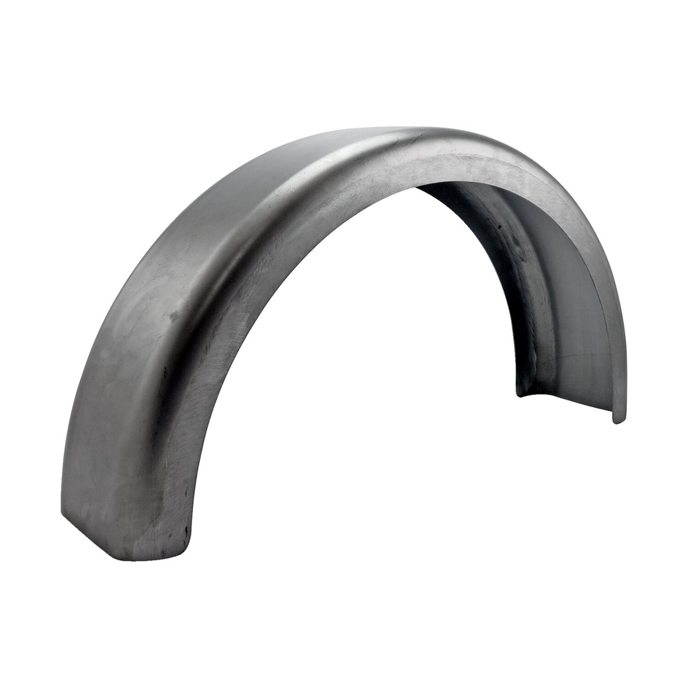 – 150mm wide. – 345mm radius. – 107cm long. – 2mm thick. Flat top styled. Especially designed for bikes without suspension, therefore the fender can be mounted closer to the tire. A special, smaller, radius is used to let the fender ‘hug’ the tire better, to get that cool low custom look that only a rigid frame can provide. Note: Length is measured around the radius. Width is measured from inside to inside and mentioned for reference only.