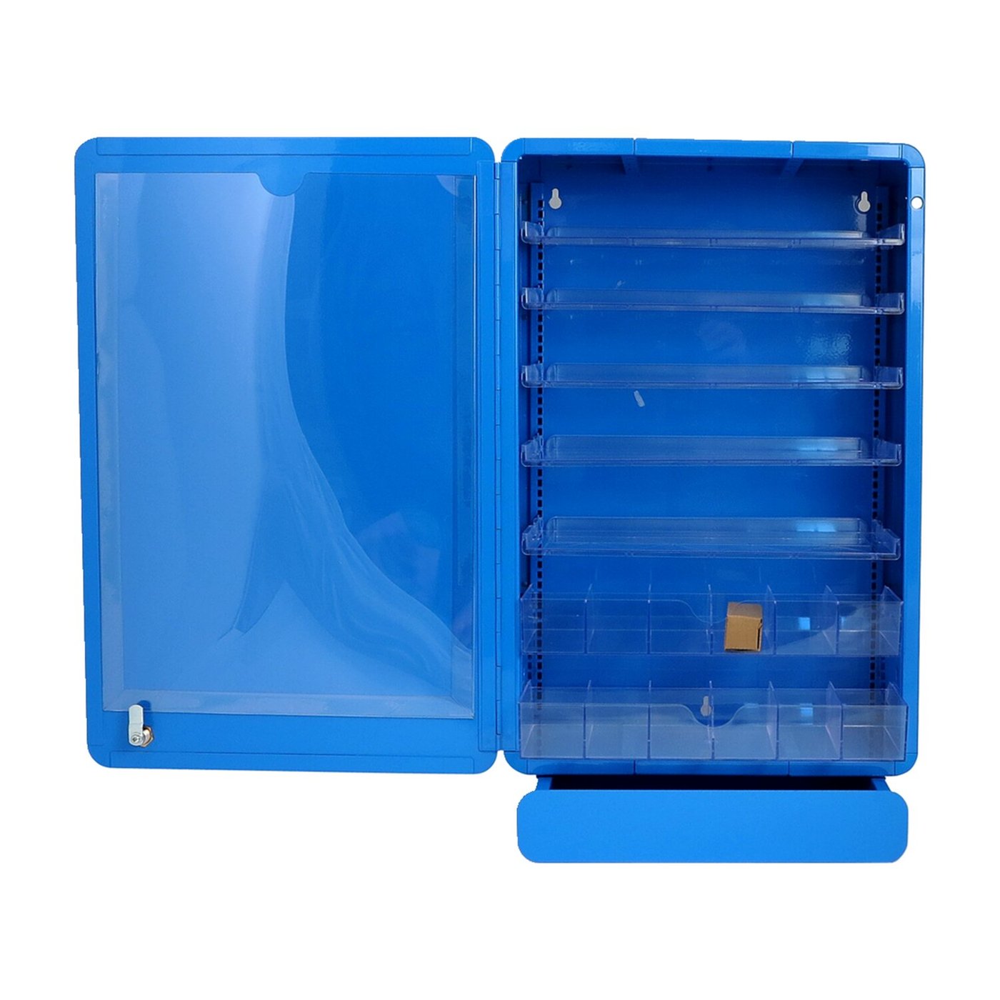 Designed for universal automotive use, but will work for motorcycle light bulbs equally well. The wall dispenser is robust, metal made and lockable. Allows easy storage and fast location of the desired bulb makes this dispenser a joy to work with. Incl. two practical drawers for signaling lamps and one external drawer for tools. Dimensions: 37 x 17.6 x 59.5cm.