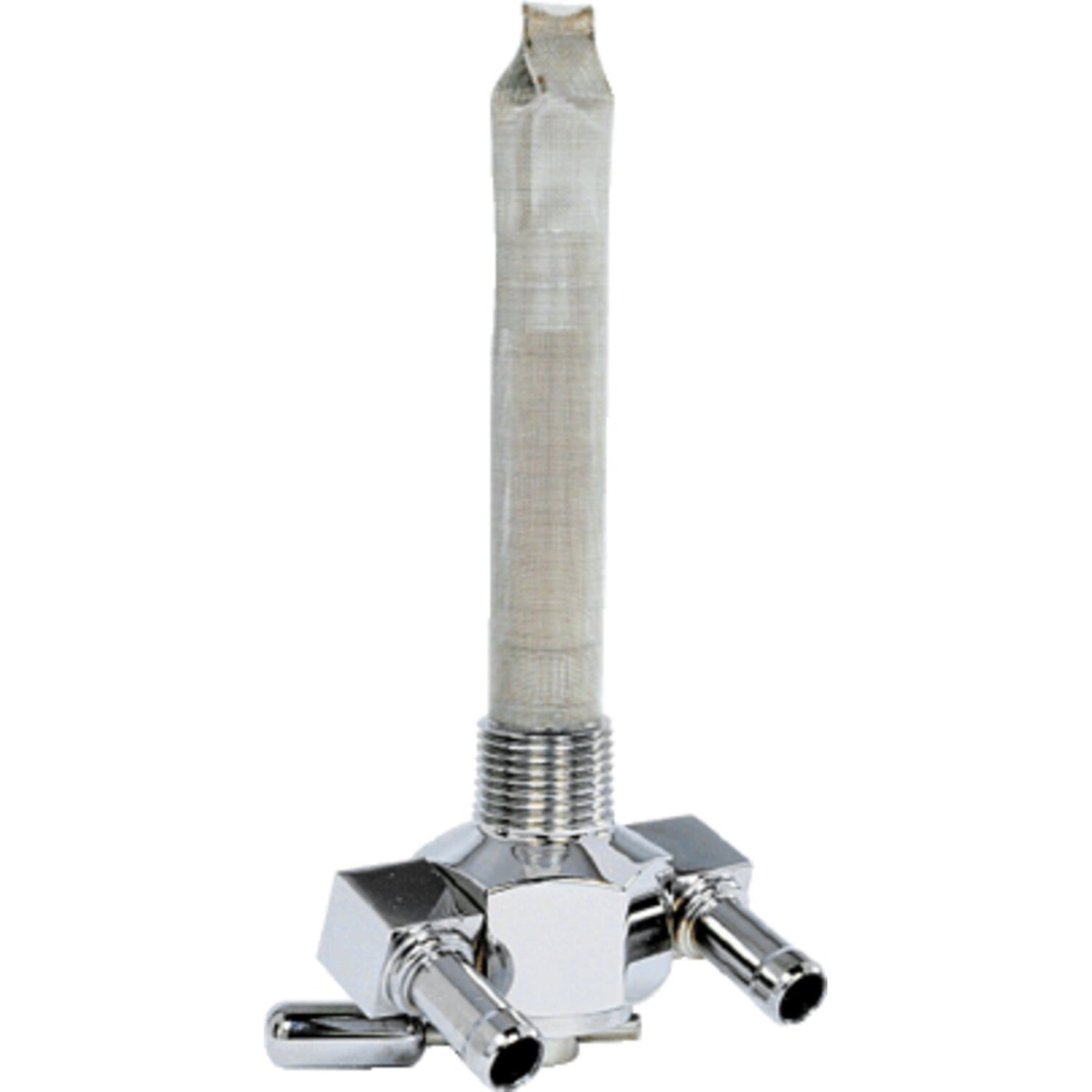 Chrome; 3/8 NPT; 5/16 (8mm) fuel hose; rear dual outlet. If you need a petcock that is made without compromises, you’ll want a Pingel. Pingel petcocks are world famous for their gas guzzling capabilities and if you think you don’t need a high flow petcock… think again. With a regular petcock, when traveling at high speed, even with a stock engine, it can happen that your bike uses more fuel than a regular petcock can deliver. The engine sucks the float bowl dry, literally starving the engine. With High Performance Big Inch motors the problem increases. Pingel petcocks can supply the amount of fuel your engine needs to perform. Note: This petcock has a rear outlet. If you rotate the complete ‘rear outlet’ petcock 90 degrees, you can make the outlet point to the left or right and are still able to control the fuel valve handle. This makes a pretty universal set-up for future gas tanks where petcock location may be different.