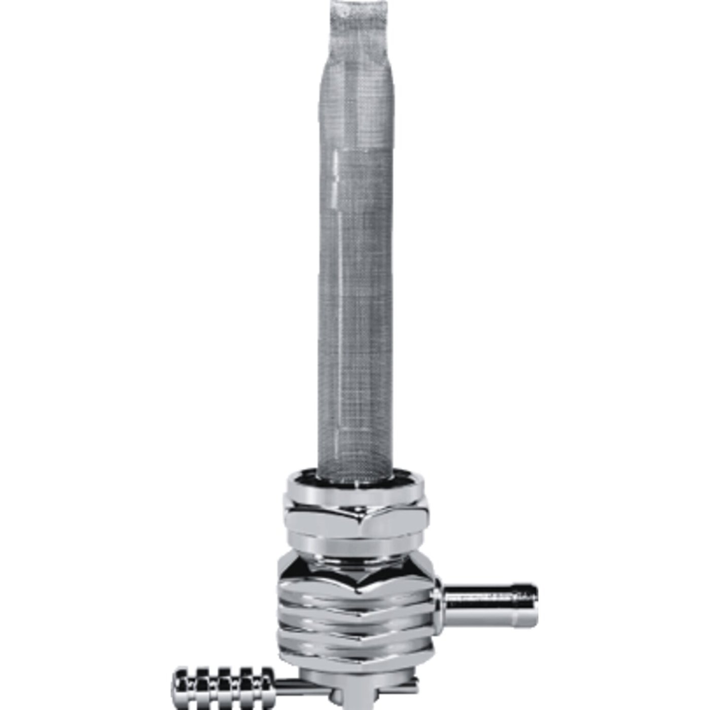 Chrome plated; 22mm & nut; 5/16 (8mm) fuel hose; rear outlet. If you need a petcock that is made without compromises, you’ll want a Pingel. Pingel petcocks are world famous for their gas guzzling capabilities and if you think you don’t need a high flow petcock… think again. With a regular petcock, when traveling at high speed, even with a stock engine, it can happen that your bike uses more fuel than a regular petcock can deliver. The engine sucks the float bowl dry, literally starving the engine. With High Performance Big Inch motors the problem increases. Pingel petcocks can supply the amount of fuel your engine needs to perform. Note: This petcock has a rear outlet. If you rotate the complete ‘rear outlet’ petcock 90 degrees, you can make the outlet point to the left or right and are still able to control the fuel valve handle. This makes a pretty universal set-up for future gas tanks where petcock location may be different.