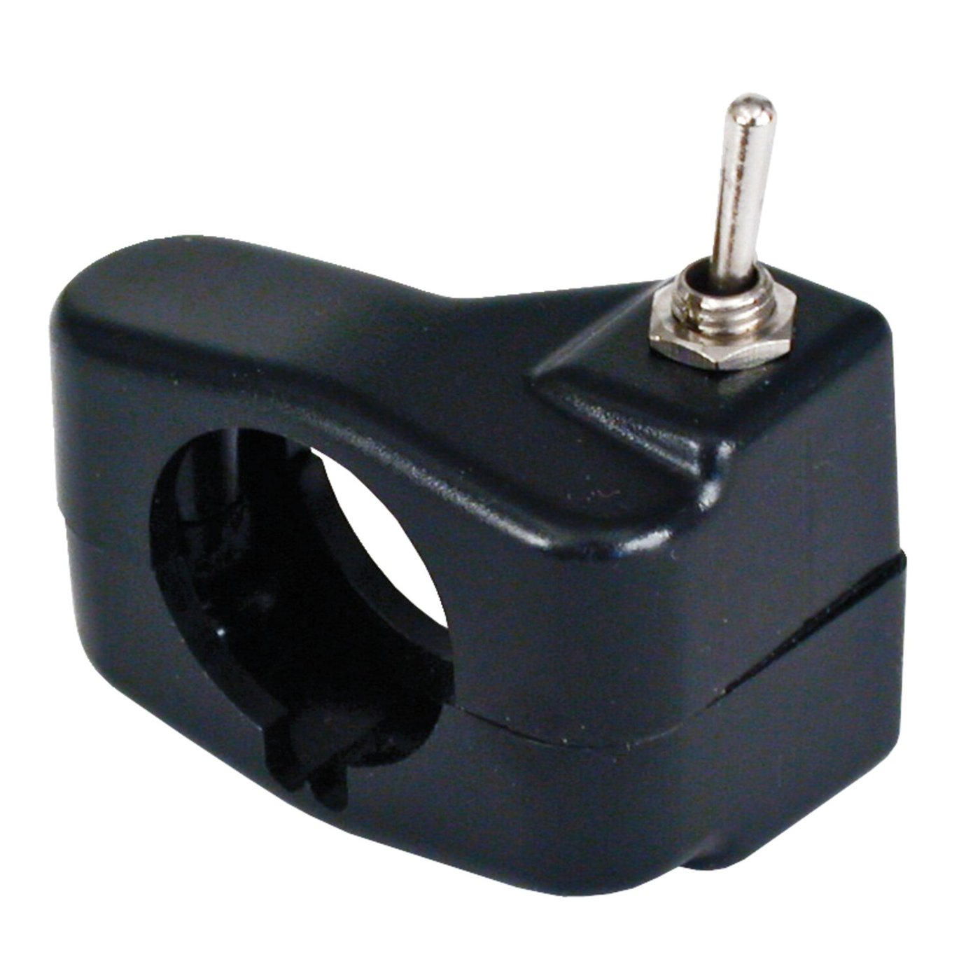 Black painted injection molded polycarbonate 2-piece housing with a 3-way on/off/on rocker switch for custom accessory switching. For 7/8″ (22mm) diameter handlebars. Complete with wiring and rated for 5 Amps. Note: Will not fit Classic H-D 1″ handlebars.
