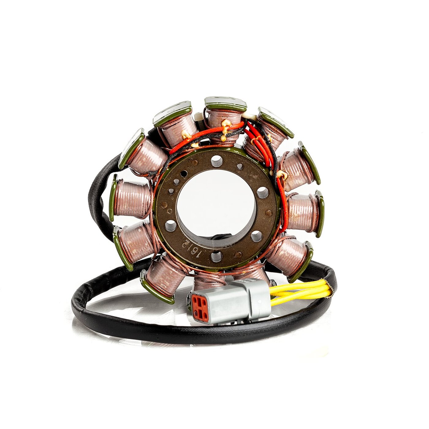Replacement upgraded stator, wound with a special high temperature wire. Note: Before installing this stator be sure to have the OEM upgraded version of the Buell rotor, otherwise stators will continue to burn. Note: See 913196 for the stator cover gasket.