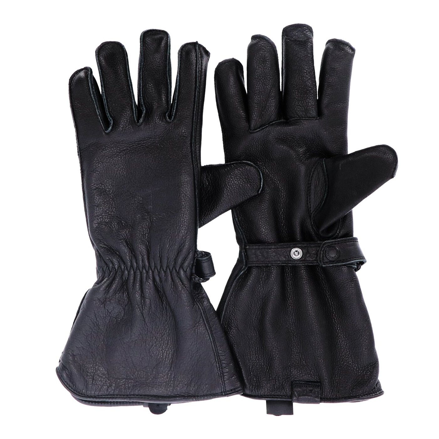 Get ready for some cold weather with the elegant vintage Roeg® Jettson Gaunlet gloves. Its outer seams, inner lining and high shaft provide that comfy warm feeling. The Jettson Gaunlet gloves are full leather gloves with a press stud on the wrist for adjustment, some nice details and are CE approved by EN 13594:2015.