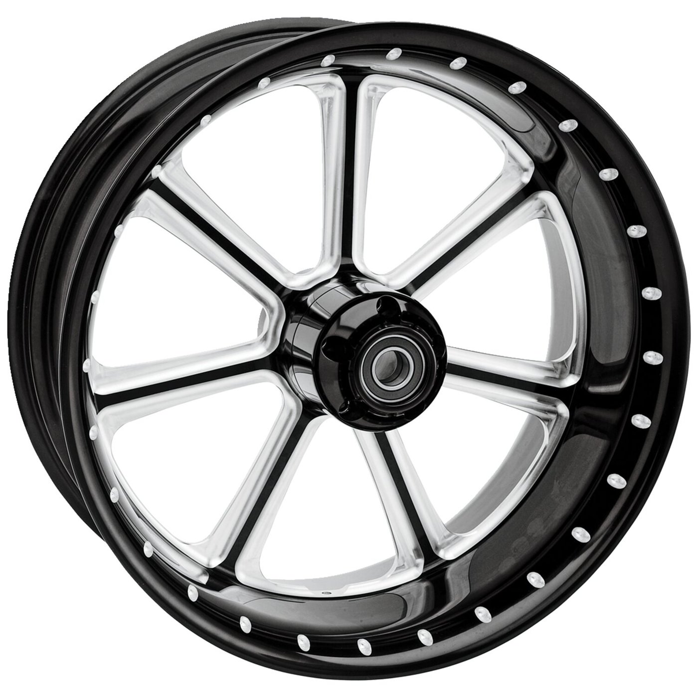 – Rear – Gloss black with a Contrast Cut finish – CNC machined from hammer forged aluminum to provide maximum structural strength – Complete with pre-installed bearings and spacers for a bolt-in installation – Suitable for tubeless tires – A striking Roland Sands design that is matched only by the detail of its finish – Manufactured by Performance Machine – Will complement all bikes from stock to custom. Note: 5.50″ and wider wheels will not take stock brake rotors due to the larger (2.50″ OD) wheel bearings that are used in these wheels. Special 2.50″ ID PM brake rotors are available and must be ordered separately. Note: Many wheels come with approval, apart from all Paramount wheels, and more sizes and applications are constantly being added. For the latest information on approval see ‘performancemachine.com’ and search for wheel type, sizes and model application to see if a specific wheel comes with approval documents.