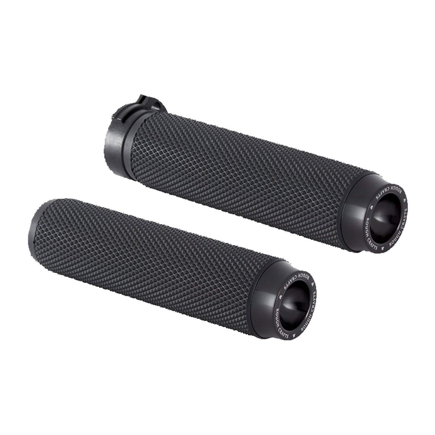 Home > Parts > Handlebars & Hand Controls > Grips > Rough Crafts, knurled rubber handlebar grips. Black