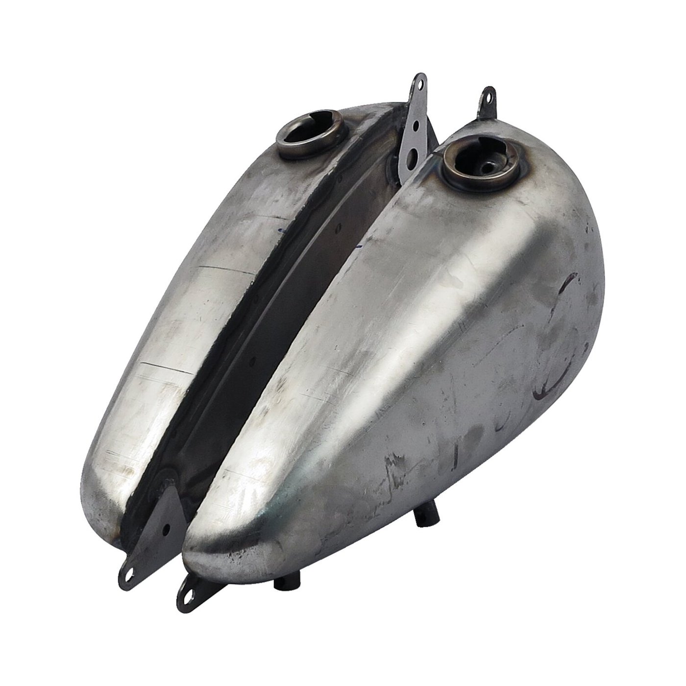 Extra narrow racing style left side fuel / right side oil tanks for the 750 cc (45″ ) Side Valve models. Capacity 2.6 gallon (10 liter). Takes stock, up to 1946 style, shifter. Is to be used with the early style fuel valve rod system. Compatible with stock style 45″ Flathead gas caps. Note: It is advised to pressure test, seal and test fit all tanks before tanks are painted and installed. Some tanks are painted, but this coat is applied for rust prevention during storage only.