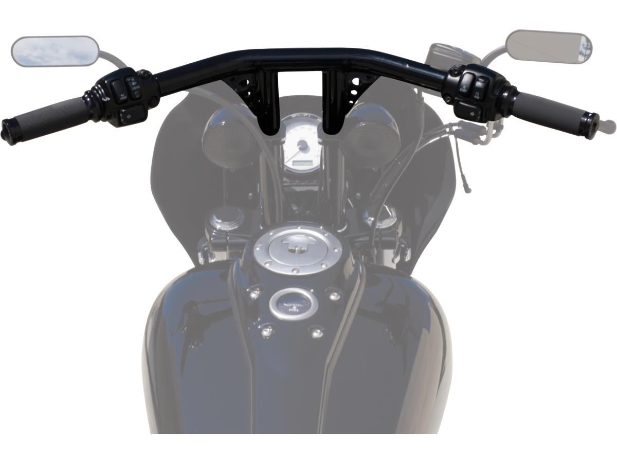Santee 12 Straight-Up T-Bar Handlebar Non-Dimpled 4-Hole Black Powder Coated 1 1/4″ Throttle By Wire Throttle Cables