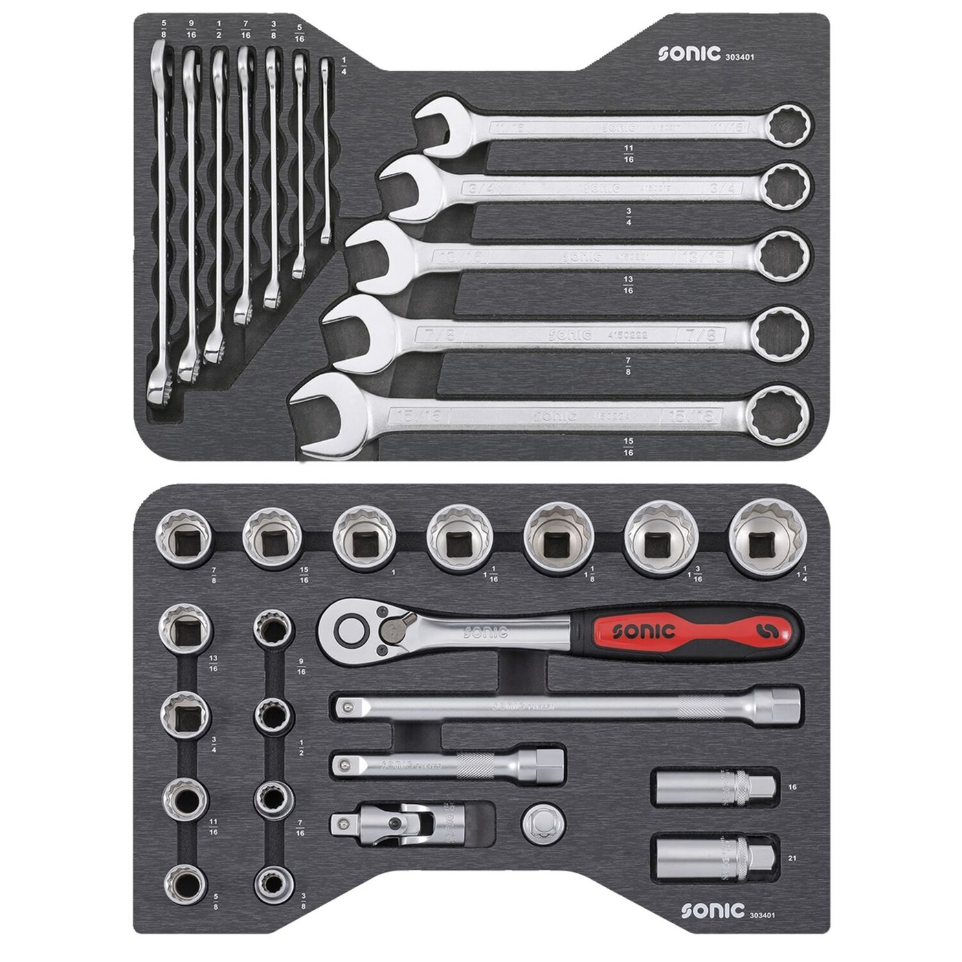 SonicSonic, combination socket/wrench set 1/2”, 34-piece. US/SAE 951882
