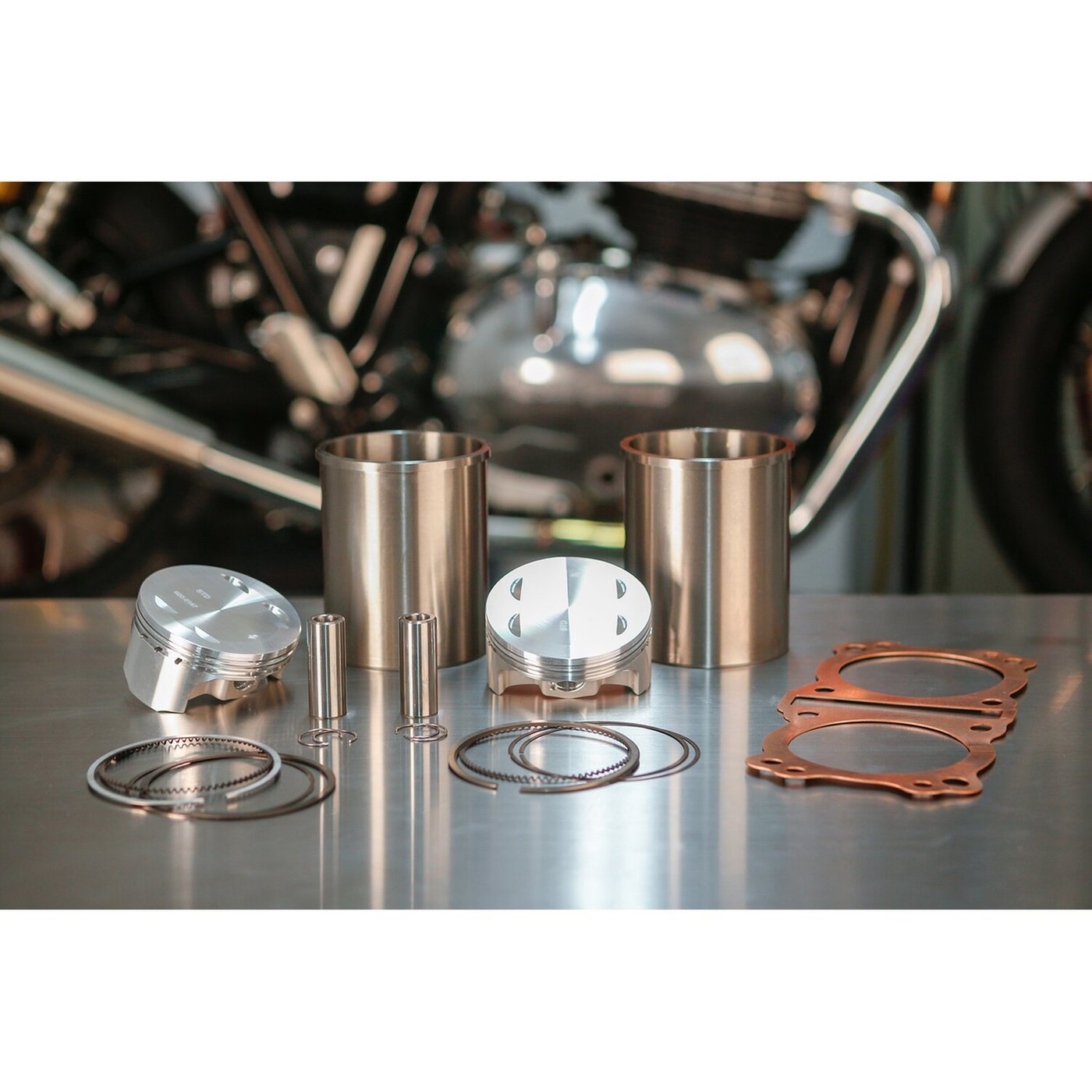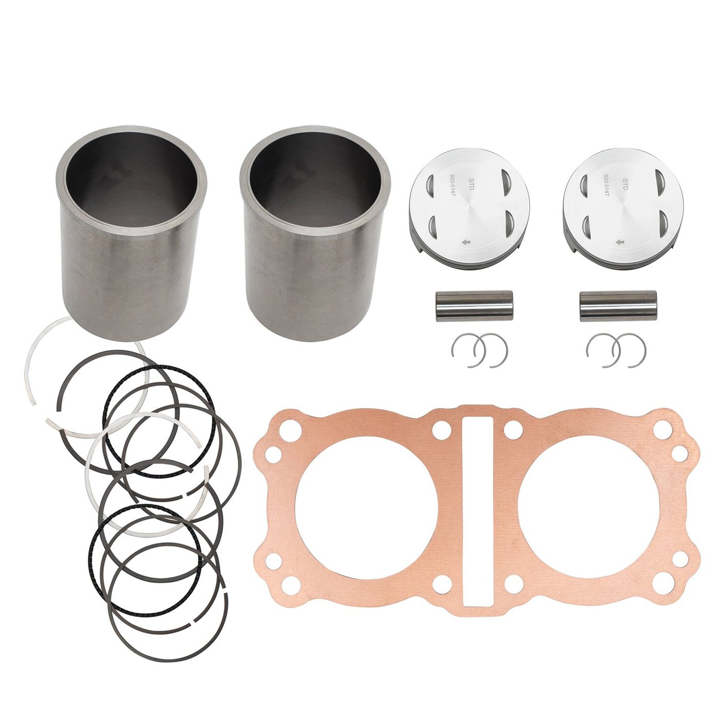 865cc kit. Increases bore from stock 78mm to 90mm. 865cc kit. Complete kit that includes big bore cylinder sleeves, big bore pistons, rings, wristpins, wristpin clips and a head gasket. Increases compression ratio from stock 9.5:1 to 11:1.