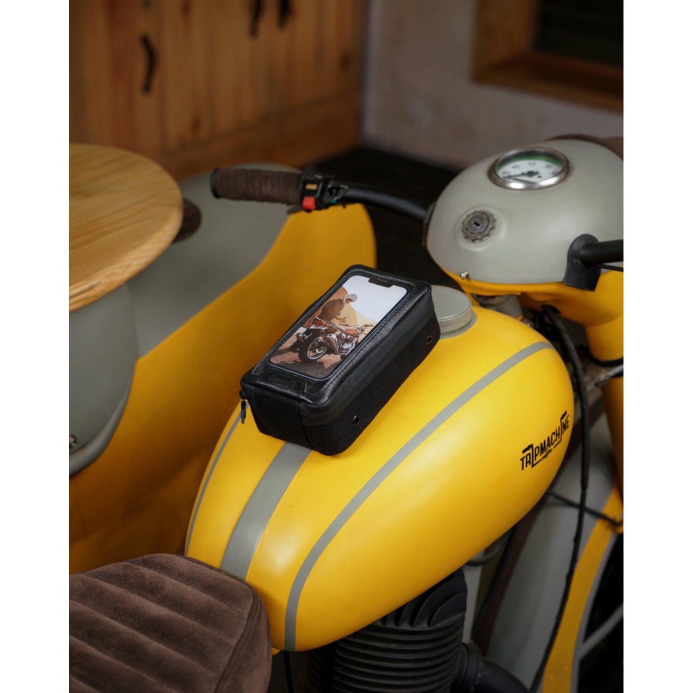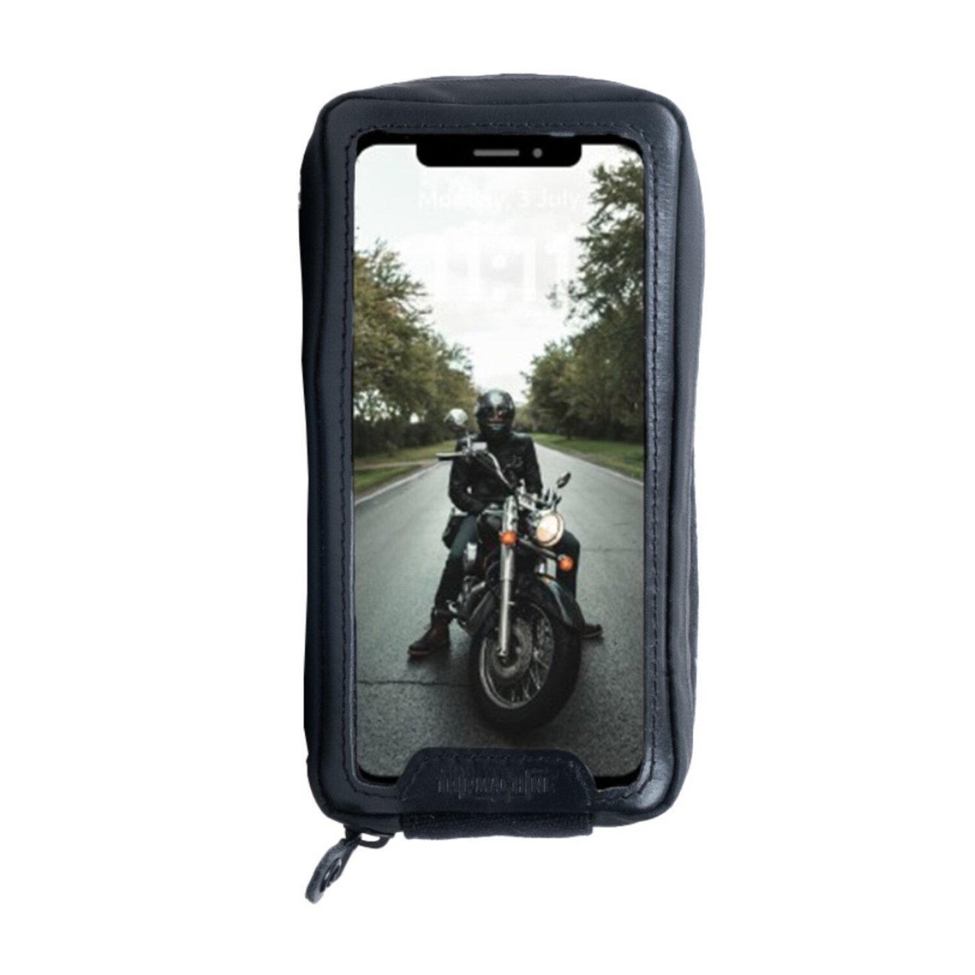This hand made Navigator bag will allow you to use your phone for navigation, the screen is touch screen friendly and it comes with a waterproof YKK zipper and 6 super strong magnets that will not let go during riding. The navigator bag is also multi-purpouse since it is extra (7.5cm) deep which allows it to hold additional essentials as keys, ear phones, wallet or credit cards etc., either on-bike or off-bike. When off-bike it can be worn as a fanny pack or carried on your belt. The heavy duty canvas is luxureous amalgamated with signature leather. Approx. dimensions: 22cm high x 12.5cm wide x 7.5cm deep. Fits phones with dimensions up to 160mm x 85mm.