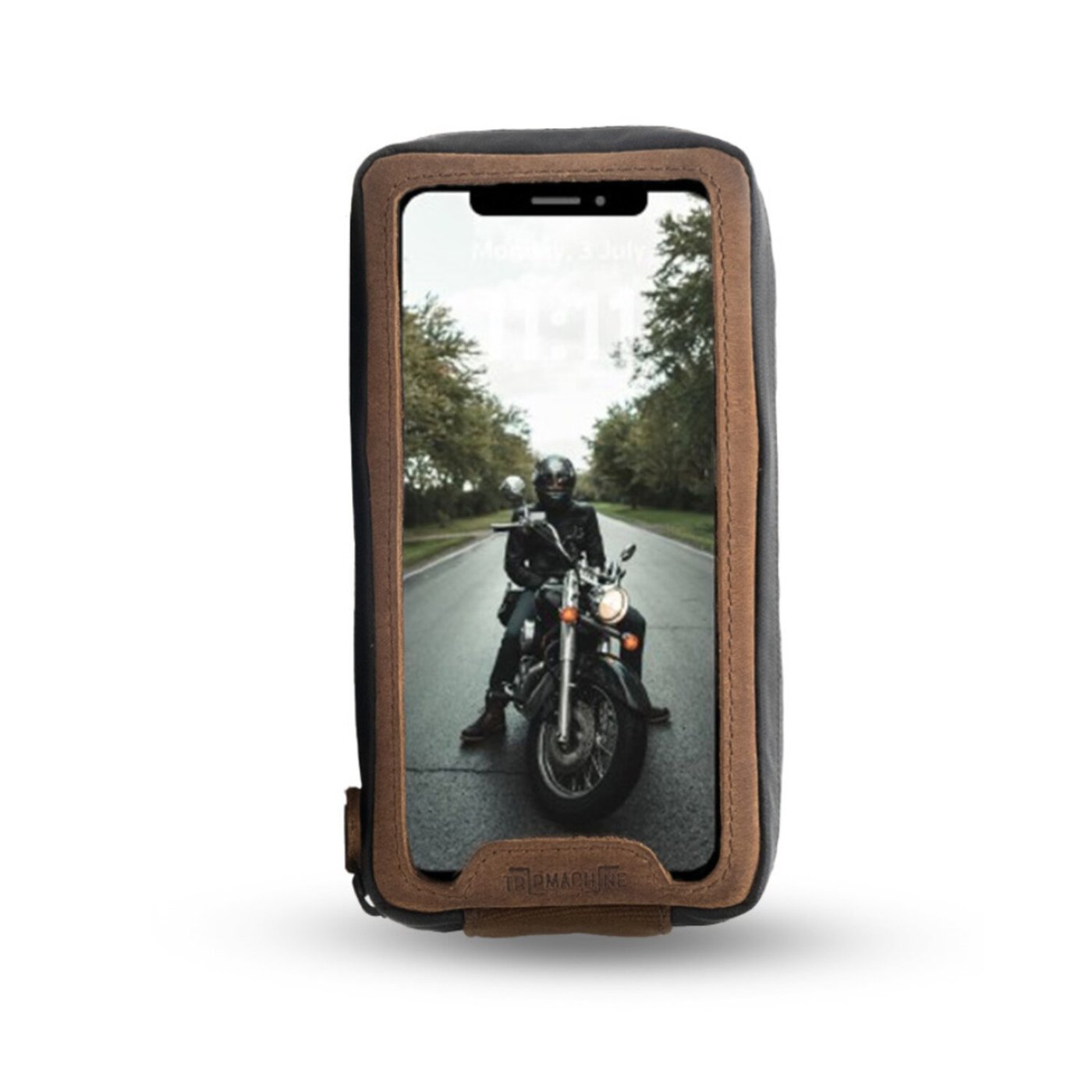 This hand made Navigator bag will allow you to use your phone for navigation, the screen is touch screen friendly and it comes with a waterproof YKK zipper and 6 super strong magnets that will not let go during riding. The navigator bag is also multi-purpouse since it is extra (7.5cm) deep which allows it to hold additional essentials as keys, ear phones, wallet or credit cards etc., either on-bike or off-bike. When off-bike it can be worn as a fanny pack or carried on your belt. The heavy duty canvas is luxureous amalgamated with signature leather. Approx. dimensions: 22cm high x 12.5cm wide x 7.5cm deep. Fits phones with dimensions up to 160mm x 85mm.