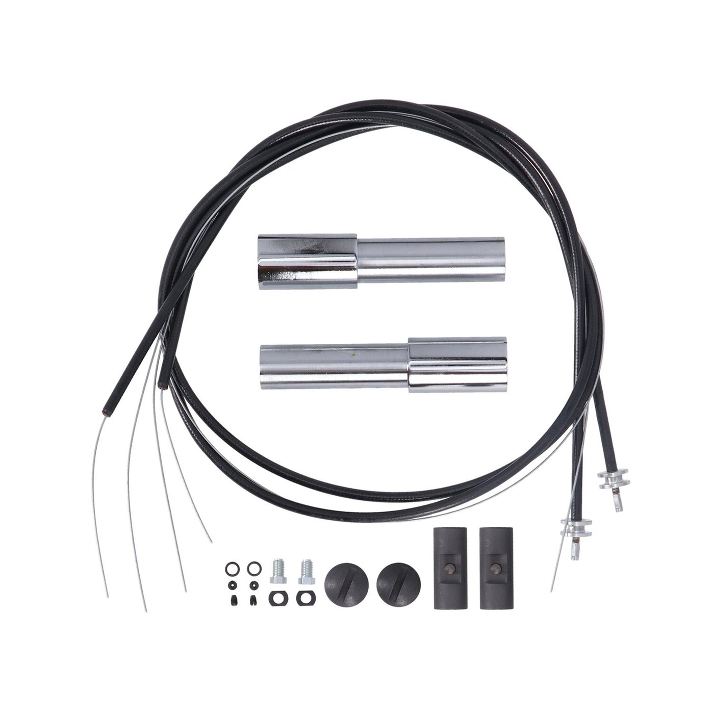 OEM style early Springer handlebar throttle mount kit with push to open throttle action. Incl. left & right internal throttle & ignition control spirals, plungers, cables and screws. Note: Rubber grips must be ordered separately. Note: The OEM Linkert carb has a push-open throttle action.