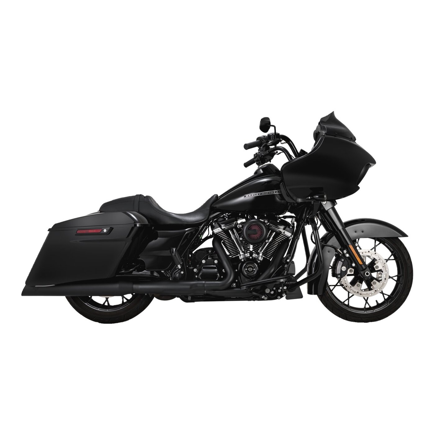 Matte black ceramic coated. Enhance the long and low profile of the stretched saddlebags found on a blacked-out S model Milwaukee Eight bagger. The patent pending LS275 baffle design gives the Backslash 450 slip-ons a deep rumble, the large spin formed 4.5″ diameter mufflers fill out the exhaust cutouts to sit flush and in line with rear angle of the bags for that streamlined custom look that fits the bike so well. After installation take a cold one, give the result a long hard look and you’ll just feel the universe come into balance. Tech tip: Pre-2021 USA mufflers on a 2021-up EU Touring? The FuelPak FP4 (part number 942227) allows you to disable the 2nd. downstream O2 sensor, without triggering trouble codes. This will enable you to use US or pre-2021 EU exhausts/mufflers that are not equipped with a downstream O2 sensor connection.