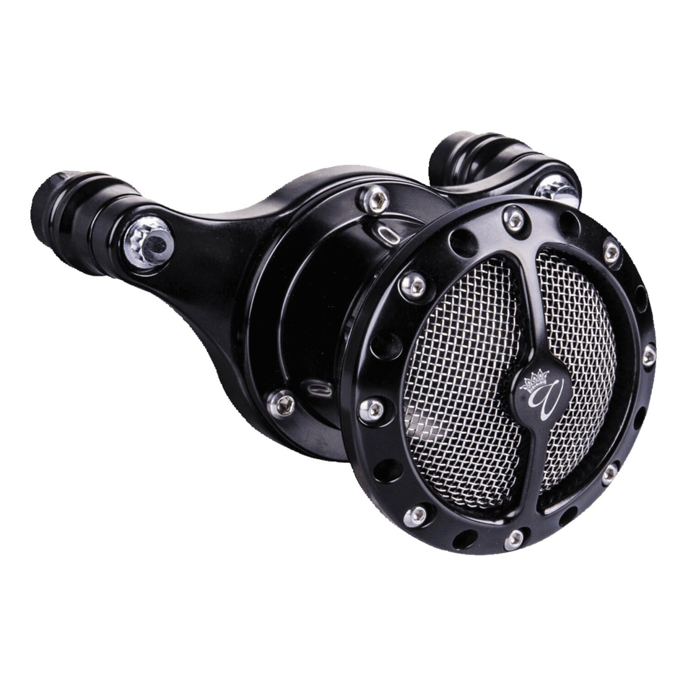 Gloss black anodized finish. 3-D CNC machined aluminum with a mesh bug filter. Vity’s Design manufactures products for those not shy of some attention. Designed as a balanced mix between the refined grace of classic elegance and a radical retro head turner. Apart from the visual stimulance, their attention to detail is nothing less than extraordinary. For those on route to glamour and grace, these are the parts that’ll help lift your ride to previously unknown custom levels. Perfect to style match with other Vity’s Design products. Note: Equipped with a mesh gauze, an actual air filter element is not present and not available. Gaskets are not included.