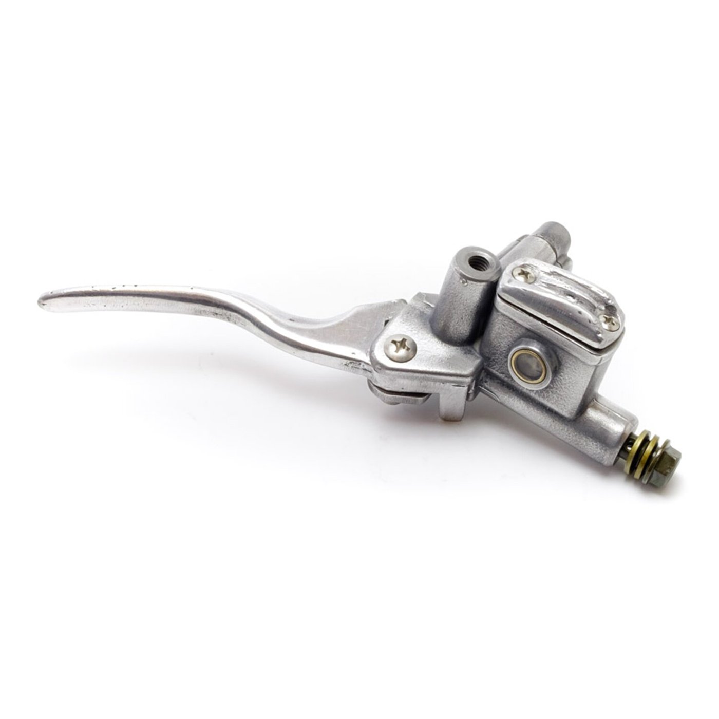 Aluminum. With an old style lever. Semi un-polished stone washed cast finish. For 1″ handlebars. 1/2″” (12.7mm) piston bore anda M10x1.25 threaded banjo bolt. Small in-house productions make these sand-cast products true handmade pieces of art with a not-so-everyday-design ready to spark your imagination. Compatible with DOT 4 and 5 brake fluids. Note: See 562434 for optional front brake light switch. Note: See 574511 for optional aluminum ball-end lever. Note: See 562726 for rebuild kit.