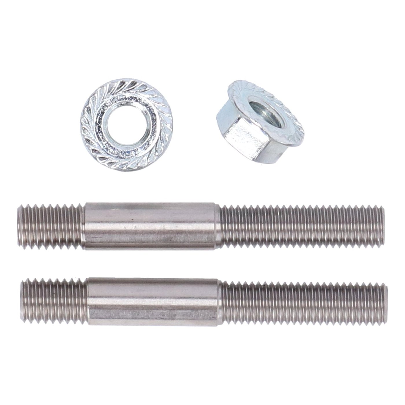 Stainless steel. This riser stud kit makes it possible to mount US 1/2-13 threaded risers to most Japanese and European bikes. 1/2″-13 x 3/4″ to M13 x 45 mm. Body diameter (hole in triple clamp): 13 mm. Total length: 98 mm. Kit includes 2 bushings, 2 lock nuts. Easy to install.