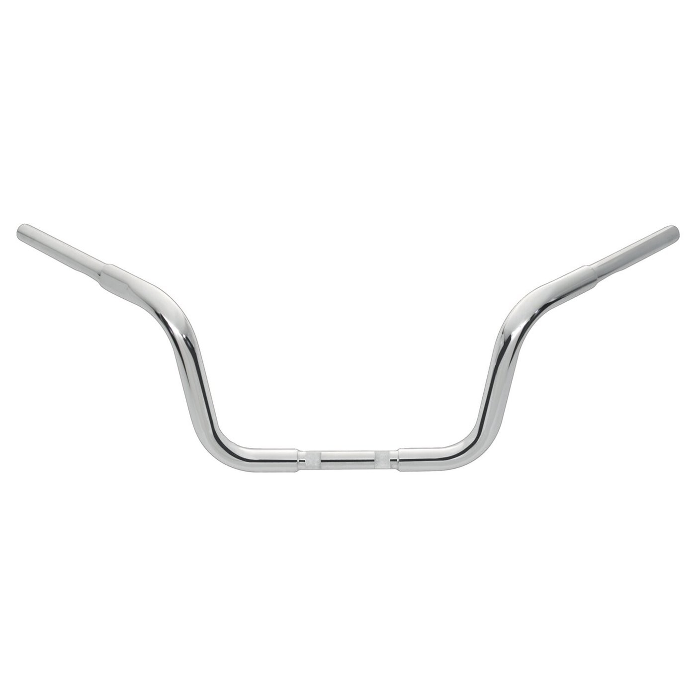 Chrome; Steel; A perfect replacement for stock Buckhorn bars. These 8.5″ rise Baby Apes maintain stock height, but put your hands in a perfect position for comfort and control. Approx. dimensions: 8.5″ end rise; 36″ wide; 10″ center; 11″ pullback